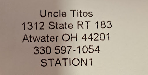 Read moreHusband went to pick up lunch at the new uncle Tito’s in Atwater, Ohio. We ordered chiro Queso for an appetizer… very greasy and somewhat bland and more then 3/4ths went into the trash, even the chips weren’t appealing. My husband ordered the Enchilada Supreme and did finish all of it but only because he said he was hungry. He did say it was dry and not as good as others he’s had. And even started feeling nauseous after burping it up later. I ordered the Pork Fajitas, when we called to order it, I wanted the pork fajitas with no pork and chicken instead… this confused them so I just accepted the pork… this was so disgusting that I didn’t even eat 1/4th before feeling nauseous. A lot of the food was flavorless, however, the pork was cooked tender, some had burn pieces. With food like this, this restaurant will not stay in business long. If you want good Mexican fare go...
