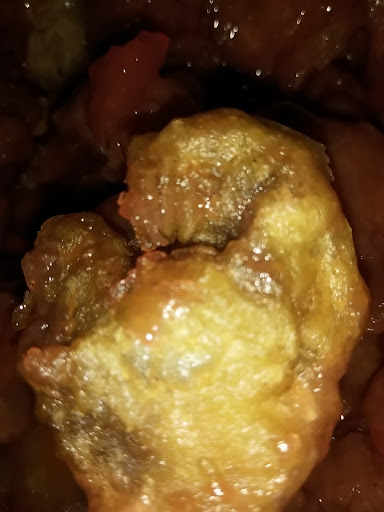 They leave their food under the warmer so long it dries out. Chicken will be all dried out. Rice dries out. Mushrooms start to look like raisins because they're losing plumpness from drying out. They also put a lot of sauce on everything, if you're taking out a lot of the cost will be from the weight of their thick sauces. It's like the food dries out so they add more sauce or they just put a ton of sauce to begin with because they know they're going to leave it under the warmer until it sells in either buffet or take out.