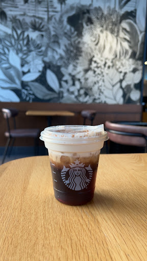 Read moreThis is my tall, 12 oz Pistachio Cold Cream Brew from Starbucks! 💚 I got it with light ice, 4 pumps of vanilla syrup, and extra of the salted brown buttery topping! I think this was a pretty good drink to me because the pistachio cold cream tasted super great and was such a wonderful addition to my drink! It didn’t taste like pistachios though in my opinion, but the cream was still nice! Drinking it right away was super pleasant, and drinking it after being mixed also made the drink still was good too! The salted brown-buttery topping was just perfect and sweet! This was a good drink to have and was $5.45! 🤎 I would get it again! The music in here was a bit loud though on a Sunday at 7am, even with my noise canceling AirPod 4s 😅 It was a little hard to focus on my work, but I still...