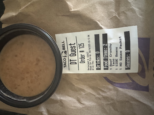Read moreThis is the last time I will be going to this taco bell. The last time I went I ordered online and went through the drive through, I said my name and they told me to wait 10 minutes until it comes through on their screen. And I know it does not take 10 minutes to come through on their screen when I ordered at my house and it takes me 15 plus to get their. This time I went they completely messed up my order. I ordered a beefy 5 layer burrito and it's just a fat bean burrito. Their is barely any meat in the burrito. Theirs barely any sour cream, and their is absolutely no cheese. I also had to pay with cash. So after I ordered on the little kiosk thing, I went up to the front to pay for my order. It took them 15 minutes to come to me. And there were 3 of them there which 2 of them weren't even doing anything. And one of them looked me straight in the eyes and just turned around, didn't say anything and just stood there, and didn't even come to the counter so I could...