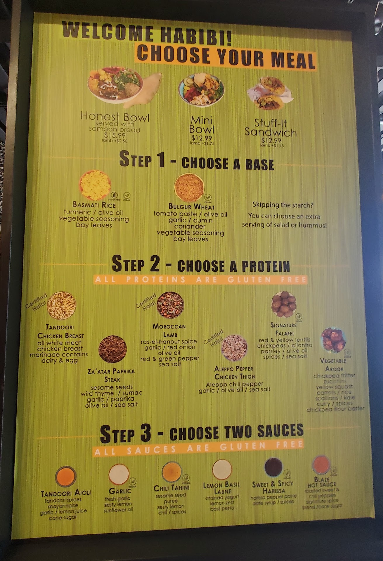 What isn't smaller, however, is the menu. New options such as Habibi's Nachos sound promising, and I'm pretty sure the vegetable arook has made it's appearance as an additional protein option for vegetarians (but they contain egg, so not vegan).