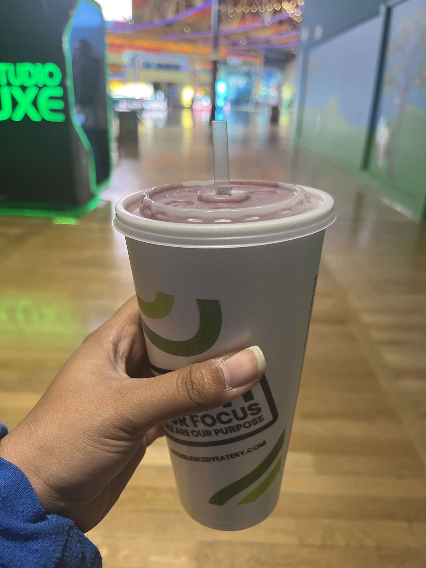 Shortly after ordering, my friend (who was picking it up) called to say the location was out of pineapple. The store offered blueberries or strawberries instead—odd choices considering this smoothie includes cayenne. I asked for mango as a substitute (a better match), but they didn’t have that either. With no good options and trying to think fast, I said cucumber.