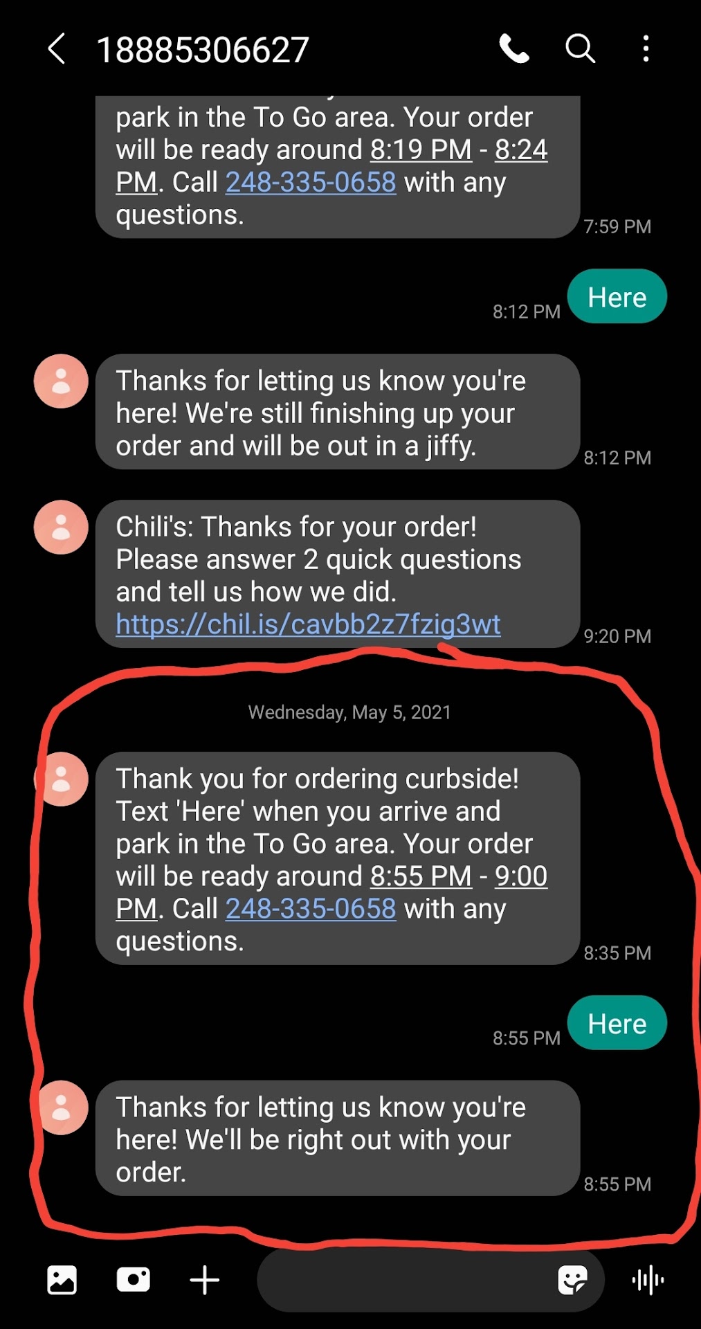 Read moreOrdered carry out. While waiting for staff at the counter a gentleman and his daughter entered the restaurant and waited next to me, placing a bag of food and drinks on the counter. It was pretty obvious they gave him my order. He gave it back and they replaced it with his correct food. Meanwhile, I’m watching her put the returned food into my bag. It’s busy, she could be new, whatever... so when she hands me the bag and a kids chocolate milk that had very obviously been drank out of I ask “are you giving me the food that they just brought back?”. This girl lies to my face. I reminded her I had been standing there since before he was in the building and personally witnessed her do it. So she’s annoyed and tells me she’ll have to find a manager to remake. I ask for a refund. Few minutes later an even more annoyed manager appears and says she can’t refund me because I ordered online but she’ll remake it and give me some coupons. Fine. But I’m really questioning the food at this point. 30 mins later I get our food and have to ask for the coupons. Then our order is wrong so I have to go back again. I got MORE attitude, accused of lying and the manager yells “just give her what she wants ughhh”. Seriously. I want the food I ordered and PAID for and I want to know it hasn’t left the building with another family before it’s handed to me. How disgusting, and what a MAJOR health code violation. We won’t be back. Disappointing because we really loved the chili’s by our old house...