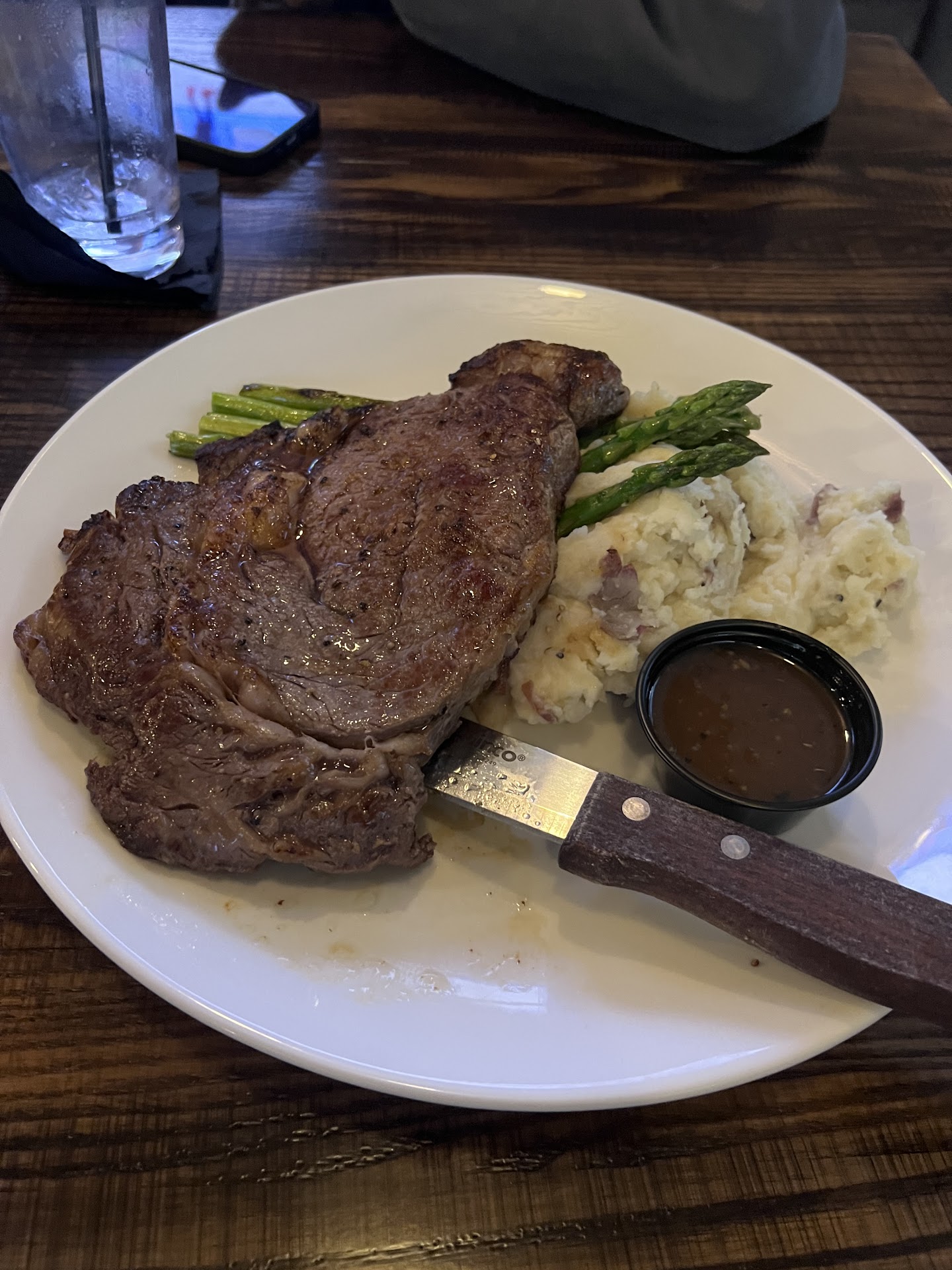 Read moreWent there for the Prime Rib Saturday special. We were seated around 5:45pm, where we then waited 5-10 minutes before one of the employees asked if we had been helped, which we had not. No big deal, place wasn’t busy but wasn’t empty either. Once our server came, I mentioned I was interested in the Prime Rib. She said she would have to check if it’s available, since they don’t start serving it until 6pm. It was 5:57pm. Even so, there is a sign outside of the restaurant explicitly saying Prime Rib Saturdays ‘5pm til out’…..I did not debate this with the server, who was either having a bad day, nervous, or shy. All-in-all, not planning on going back any time soon. I ordered fried buffalo cauliflower which was delicious. The prime rib was generously portioned, and tasted ok. I was also not asked, or had it mentioned if I prefer, my meat to be prepared a certain way. I had to ask the server if I was able to have the meat prepared...