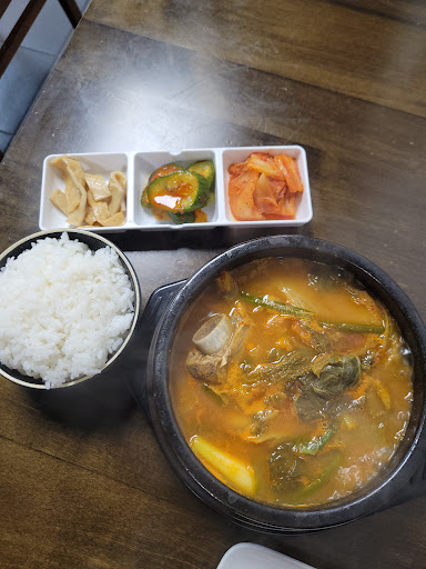 I came for lunch on a weekday afternoon. The small restaurant was crowded, but I was seated right away. I ordered the Tteok Mandu Guk - soup with rice cakes, mandu, thin sliced beef and green vegetables in a flavorful broth, with banchan and a side of rice. It was wonderful. The beef was thinly sliced and tender, the mandu were large and full of filling. The banchan was fish cake in sesame oil, seasoned bean sprouts, and, of course, kimchi. Just delicious. The staff at the restaurant are kind and helpful and the service was prompt. I am new to Korean food, and I will happily be back to work my way...