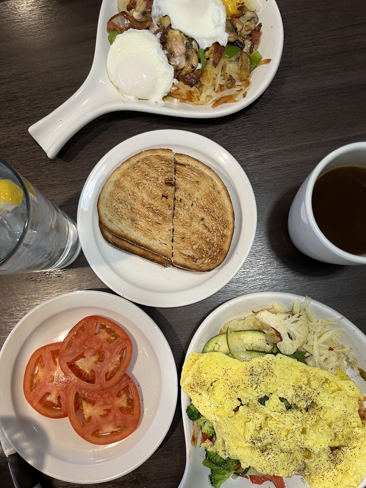 Additionally, I asked to substitute toast with tomato slices since I don’t eat bread. Most restaurants either waive the charge or let me know if there’s an extra fee. Here, I was charged $3 for a few of the thinnest tomato slices, and I wasn’t informed beforehand. It’s not a huge deal, but I wouldn’t have made the swap had I known it would cost as much as the coffee, which is also $3.
