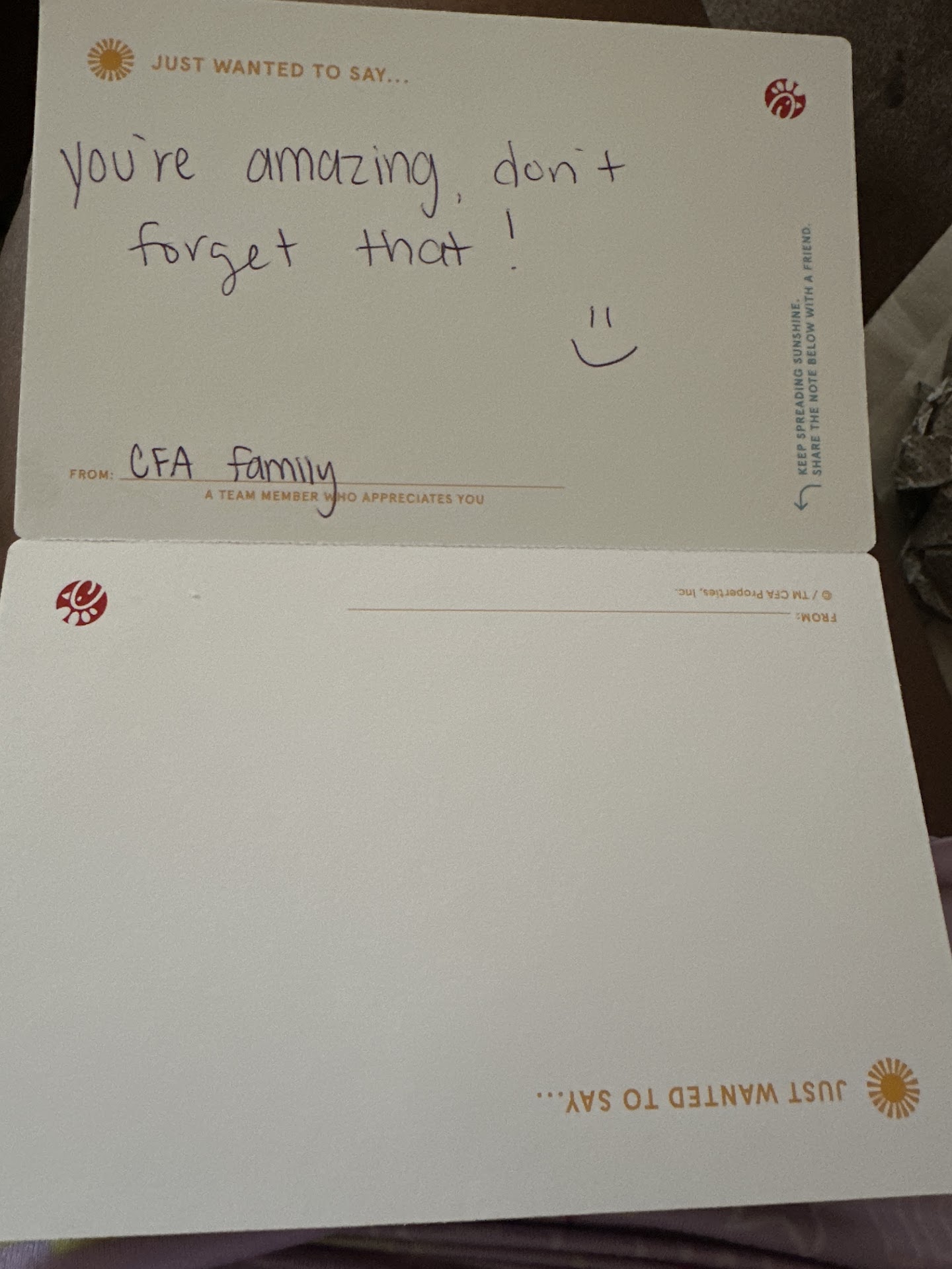 Read moreMy goodness the unprofessionalism! We placed an app order for a 12 nugget meal, 2 mac and cheeses, and a grill nugget kid meal. My husband drives there to pick up the order, drives back home, only to find that the 12 nuggets were NOT in the bag. My husband drives back to the restaurant and ask them to provide the nuggets and a fresh order of fries. This meal was for children to share, of course they were hungry, so we went ahead and gave the fries we had because they were available. Did the manager and workers really think it was appropriate to refuse to prepare us nuggets and fresh fries when we had to waste our gas to drive there and back TWICE on the account of a mistake they made? How tacky is this! My aunt had to demand a refund, but never in history would I have experienced such tackiness at a Chick Fil A restaurant. Clearly the workers are about antagonizing customers rather than providing superior service. Yes, we called Chick Fil A cares and yes we are putting this in writing as well. Sad how something so simple turned into something that's going to stick with this...
