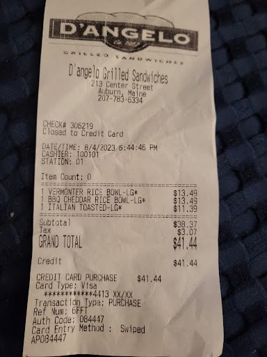 I even repeated the updated version of my sandwich order to the person ringing it up.. When I worked at DeAngelo when it was DeAngelo's we would type in the order so the slip you were looking at when making the sandwich would match up to what the customer orders. A quick reference tool at the least, and how every food establishment ever does it.. rather than that I received a receipt that said small sub.