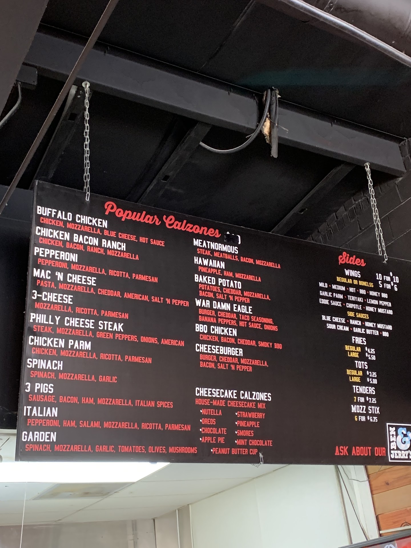 Read moreMy roommates and I went here, not once, but three times before COVID-19 hit and we realized that we never wrote a review about how terrible our experience was here. I would never ever recommend eddies calzone for any kind of food, wings, calzones, etc. One of roommate had food poisoning both times we went, had to go to the hospital once for how bad it was and I ended up getting sick from how undercooked everything was and how greasy it was. We ended up throwing our food away and leaving because we were absolutely shocked at how inedible the food was. The people in the kitchen were yelling the entire time we were there and the tables were sticky and window seals were covered with dead bugs, so we decided to eat outside but as soon as our food came out and we tasted it, we quickly threw all of it away and decided to leave. Different friends and I gave this place multiple tries because we really wanted to like it, but the food is definitely not up to standard, and you would think they would at least use decent quality ingredients with the outages prices they try to charge. Definitely do...