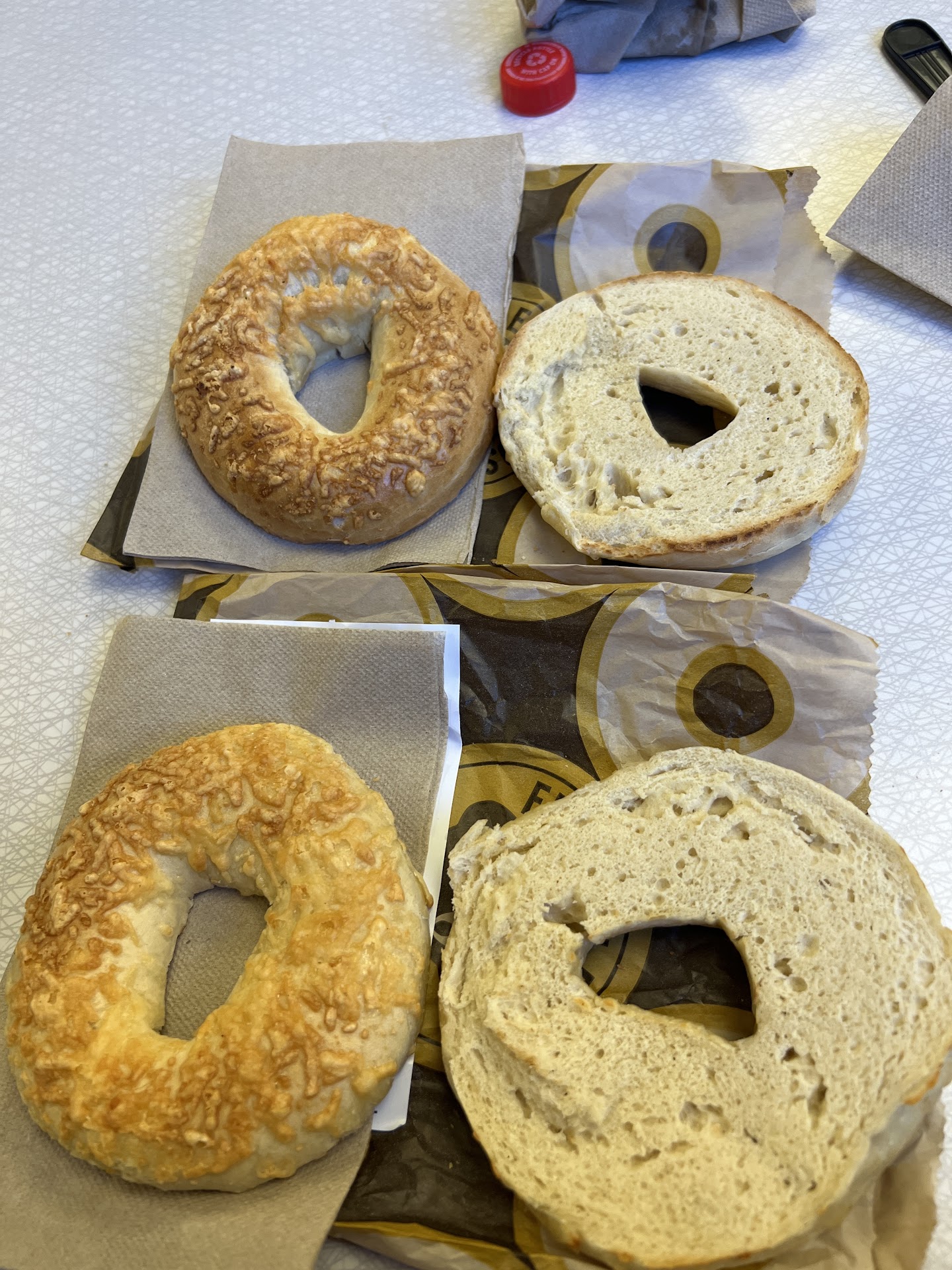 Ordered a bagel. Took me a while to get there to grab it. So it was cold. That’s my bad I realized. But it also felt not toasted at all.