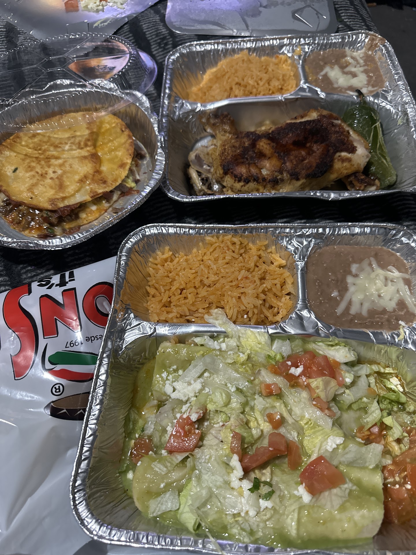 Read moreI want to start off by saying I absolutely hate leaving bad reviews but I gave them a chance to fix the mishap and this is what I came home with. I originally ordered 3 enchiladas regular with chicken and no cheese as ( I am allergic to dairy and gluten and this causes severe stomach issues) i ordered an Al pastor taco, chicken taco and beef carne asada taco on corn tortillas as I cannot have flour, also ordered 4 Al pastor tacos ( those came as they were supposed too) I confirmed my order with special requests and asked her to ensure there was no cheese on my food and I was told it had none so I go home and I find my order of tacos on flour tortillas with only chicken and beef no Al pastor, and also cheese on my enchiladas. I called and asked them to fix this re explaining why it’s important and she told me to come through the drive through and she would fix it. I came and was brought out an order and this is what I got. Cheesy tostada cheesy enchiladas and chicken with beans and cheese that I never even ordered. I’ve tried to give this restaurant multiple opportunities to fix this as this is the third time I’ve had them put cheese on food I’ve specifically said not too. Please check your order if it’s got any special changes before leaving the store. I’m extremely...