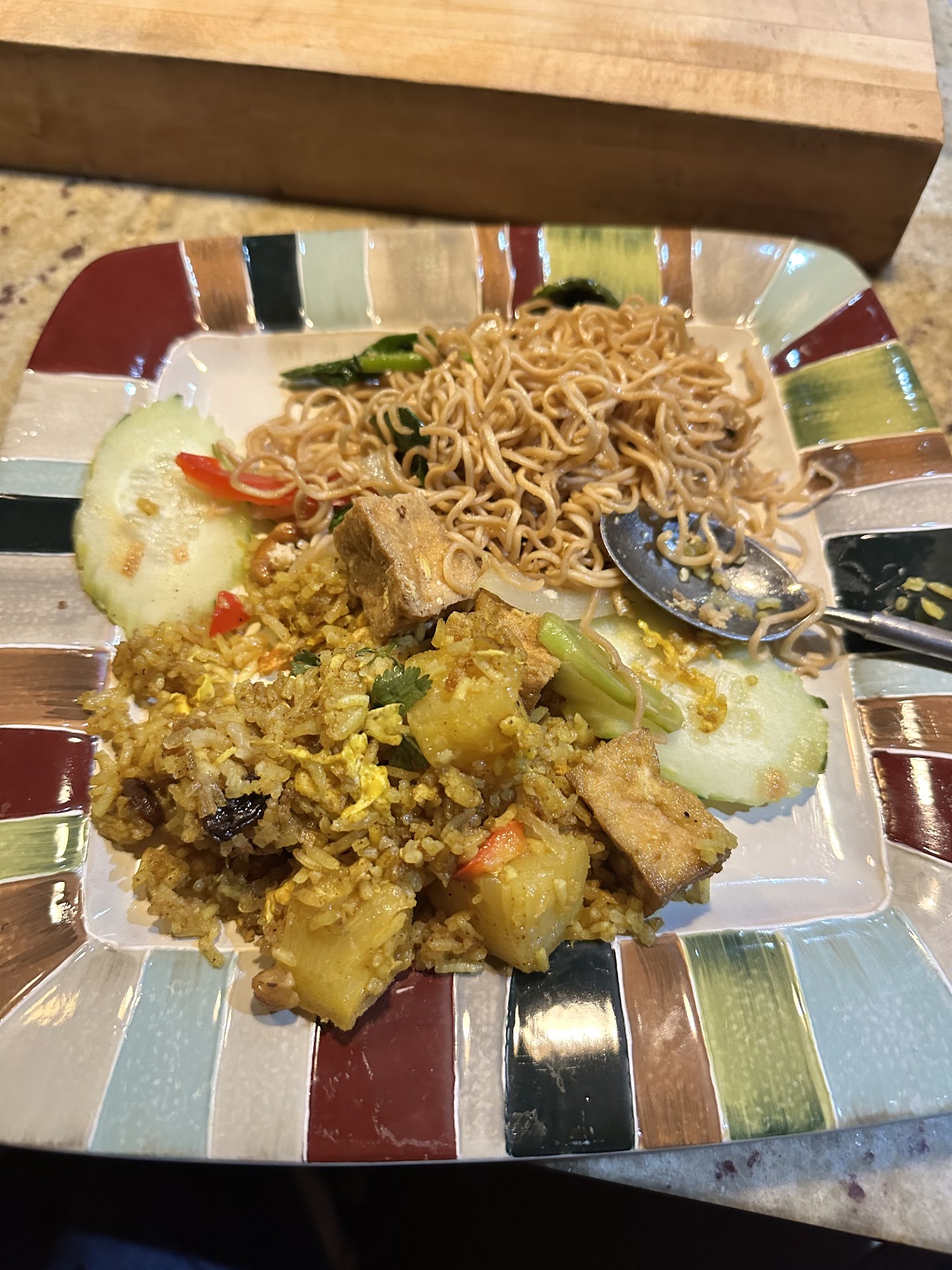 The food was quite good. We ordered a pad see ew and a fried chicken dish with ginger flavored rice. The pad see ew was well made: crispy vegetables, rice noodles tender, and chicken moist. It wasn't overly sauced like many Thai places will do. The grief chicken was crispy and juicy and came with a sweet chili sauce to dip in. Honestly, though, while the chicken was good, I was in love with their ginger flavored rice. It was unexpected, but in a good way. In addition to the food, we got a Thai ice coffee. It was wonderful. It tasted like a really good coffee ice cream, but liquid.