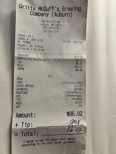 My adult daughter and.i arrived a little after 4 pm and were greeted promptly and sat on Hightop in bar area. We were.l informed our server was one of the two bartenders and would be with us shortly. Fifteen minutes later, I asked the bartender when we would get service, there were 4 people at the bar. She said it was change of shift, but our server would be with us shortly. Another 15 minutes later, 2 men arrived and sat at a table behind us. Immediately a server came over. At that point I turned around and asked when we would be attended to. She came right over and took our order. Drinks were provided 10 minutes later and our food 20 min later. I ordered a simple crispy chicken salad with Buffalo and side of blue cheese dressing NO ONIONS, well I got onions. She never returned to our table to offer more drinks or inquire about our food. We waited another 10 minutes amd finally went up to 3 servers chatting at the register (for most of time we.were there) asking for our tab. Paid it and left. I like to support our local establishments and I haven't been in the area for several years. Gritty s used to be a top spot! Very disappointed is an understatement. So be prepared to wait for drinks...