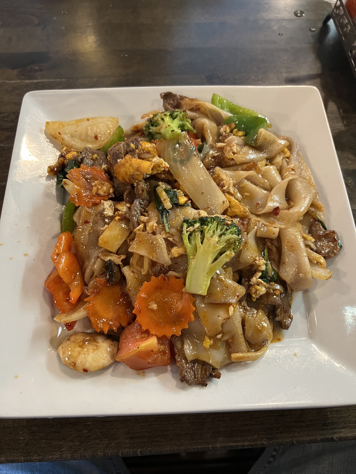 We’ve been here 5 times now over the last 2+ years, it’s by far our favorite Thai restaurant we’ve found so far in the Seattle-Tacoma area. The food quality and taste is excellent, so yummy every time. Decor here is plain, not cute, but it’s always clean here. The servers are nice and the food comes very quickly. Most servers here are not chatty or overly welcoming, which is fine with us as the service is quick and we are here for the food. We’ve been to Thailand dozens of times, and as expected the food is not the same as eating in Thailand, yet most dishes are pretty close and again, taste great! Portions are fairly generous. On our most recent visit in February 2024, two couples shared four different dishes, two sides of steamed rice, and one sticky rice, only tap water to drink, and the bill was $74 including tax but not tip. Dishes were Phad Kee Mao (Drunken Noodle) with beef which I am addicted to, Prik Khing, Tom Kha soup, and the green papaya salad Som Tom which is super fresh and good. The chef is maybe understandably reluctant to make things too spicy hot, when we ask for the hottest level (here, number 5 we believe) and challenge them to make it too spicy, they have not yet reached how hot we like it, but yeah it’s pretty hot. So if you truly like spicy hot, you have to stress that I guess. We love this place, highly...