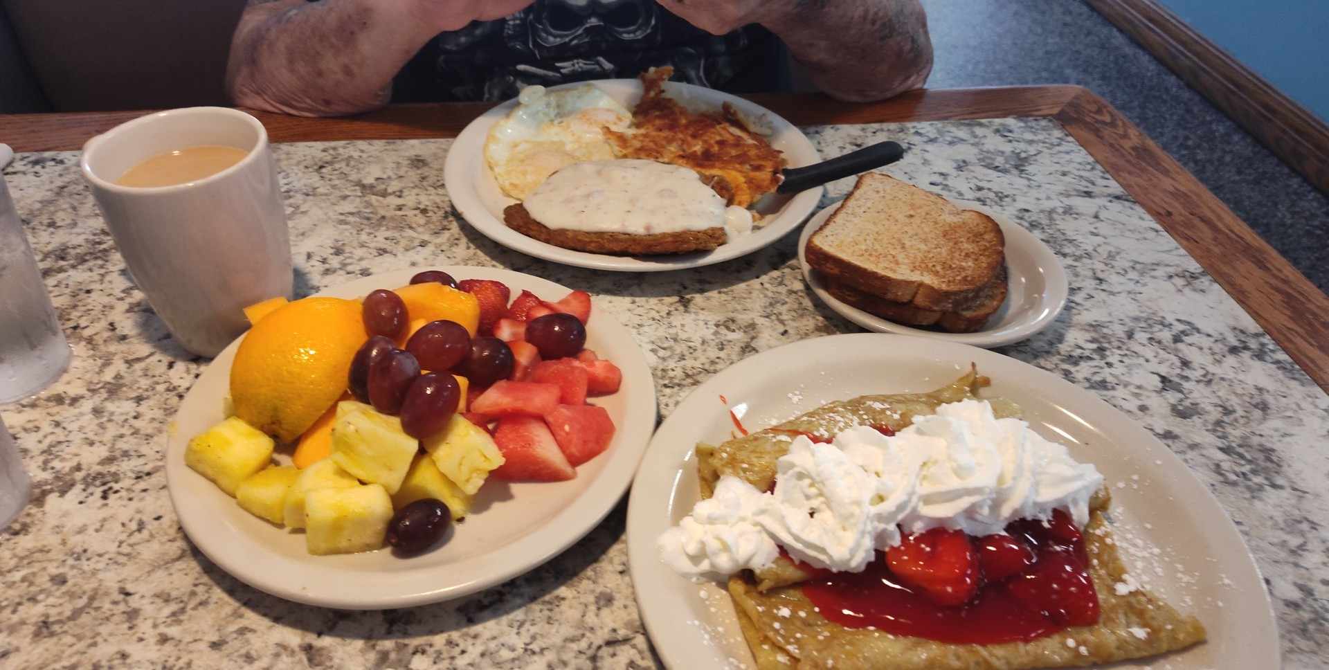 It's not very often I leave a review. I ate here for the first time with my husband and I was starving when I walked through the door. We were seated promptly, and placed our drink order. When we we're ready, I ordered a full serving of biscuits and gravy, along with some type of breakfast platter. (I forgot the name). I couldn't wait to eat and I was thinking we we're going to be waiting a while seeing how many people were in the restaurant, to my surprise we had our food in less then 10 minutes. I was actually embarrassed at how large the portions were because again, I was clearly losing weight by the minute from being so hungry 😅. The food was hot and had good flavor, again I was satisfied. I would also like to point out that, our server Faith was very kind and courteous and had a warm welcoming smile. She checked on us often, but not so often that we couldn't enjoy our food. I even noticed her watching another servers tables and making sure that they were aware the customer hadn't yet gotten their drinks or ordered yet. She mentioned it in a way that was polite and very professional. When I asked for a refill on my orange juice she did let me know there would be a charge ahead of time for the drink which I anticipated already, however I thought was thoughtful so I wouldn't be surprised. I watched her interact with other tables and make small talk between ordering and it just felt like an overall wonderful experience. She is definitely someone you want to keep around and going places. I could actually see her owning her own restaurant in the future. My husband and I left with plenty of left overs for later and ready for a nap.