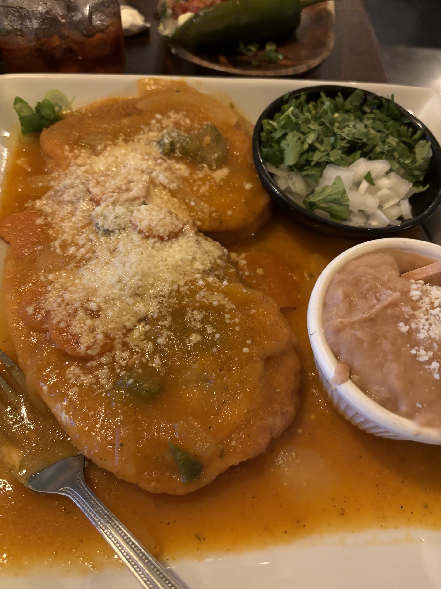 Read moreSelection was limited, but what we had was very good. I had the chicken Ala crema with rice & refried beans. The crema was a good compliment to the chicken breast. Didn't care too much for the refried beans. The wife had the vacio steak. Was way more steak than expected. She enjoyed it. Rice & brown beans. I tried her brown beans. Not sure how it was cooked or flavored but it was the best brown beans I'd ever tasted. Three different salsas, the green salsa was spicy & tasty. The waitress gave me 4 to go cups. I'd buy that by the jar. I highly recommend my wife's vacio steak. For $ 35 bucks it's enough for 2-3 people. The leftover steak, we'll have tomorrow night with grilled onion, red & yellow grilled peppers &...