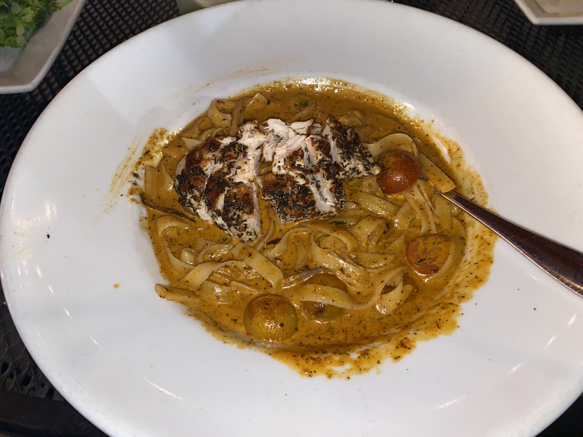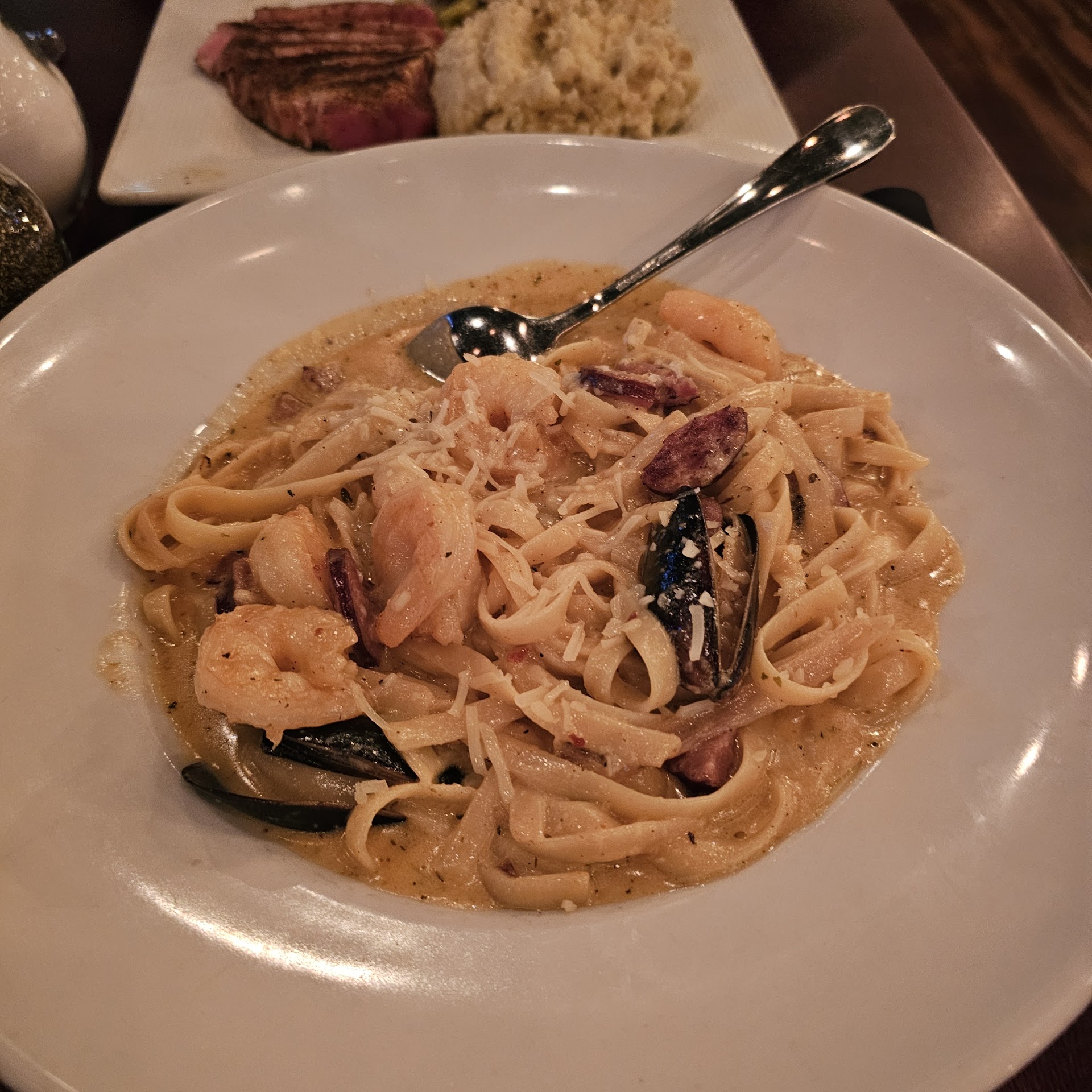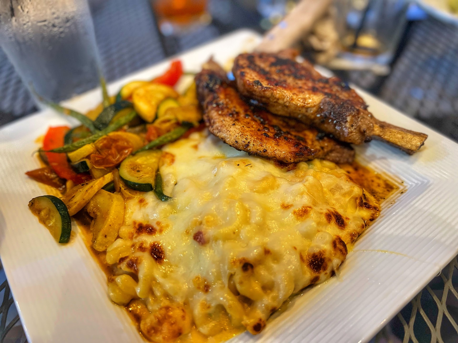 Read moreOur group of 5 went at 5 while students were gone. We were seated immediately and served drinks quickly. Our food was also served quickly, we were the only people in the restaurant at this time. We got crab cakes, chips and queso and macaroni bites as appetizers. The half off of macaroni and cheese bites and chips and queso was nice and why we ordered so many apps. Crab cakes were "wet" and mushy, macaroni and cheese bites were really crispy but tasted bland. The sauces served with them were confusing, honey mustard and remoulade? We ordered chicken Florentine, seafood pasta, black and blue salad and grilled chicken plate as entrees. Seafood pasta was inedible, too much seasoning especially salt. Chicken Florentine was good, not great. Black and blue salad was okay, and grilled chicken plate was okay, macaroni and cheese side was bland. Side salad was good especially croutons and ranch. We sat in a corner booth with a curious baby so her hands are into everything, window seals are dirty with flies. When picking up dropped crayons spider webs everywhere. The patio, while I know it's off season, was pretty bad, trash in corners, the tap fountain was full of algae water, the hostess stand was rotting and falling apart. Overall food was okay at best, service would have been perfect if we weren't waiting for our check and togo boxes for too long even when we were the only people in the restaurant. And the cleanliness was pretty low. First time we've been and probably the last...
