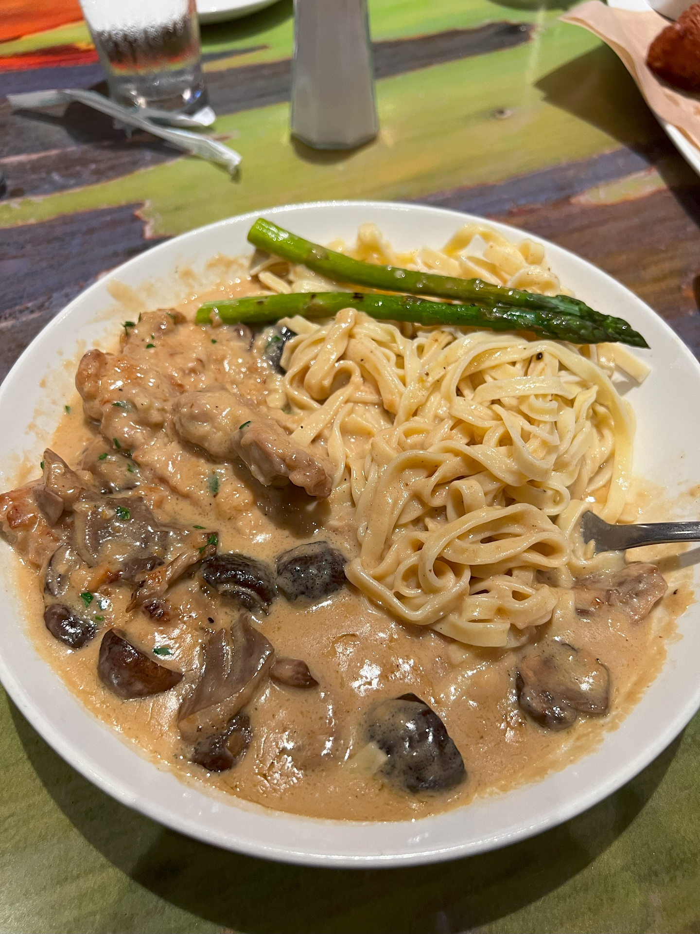 At 7:30 PM, we were fortunate to secure a table, which was a positive start. However, the atmosphere was underwhelmingānothing particularly special stood out, and the restaurant was uncomfortably cold, making it hard to relax and enjoy the meal. Ordering was prompt, and we chose the Mushroom Chicken Cutlets and Halibut Fish and Chips. The Mushroom Chicken Cutlets featured braised chicken in a creamy Marsala mushroom sauce, served with linguini pasta and charred asparagus. This dish was a highlight; the chicken, while slightly overcooked, was complemented by a rich and creamy sauce that enhanced its flavor.
