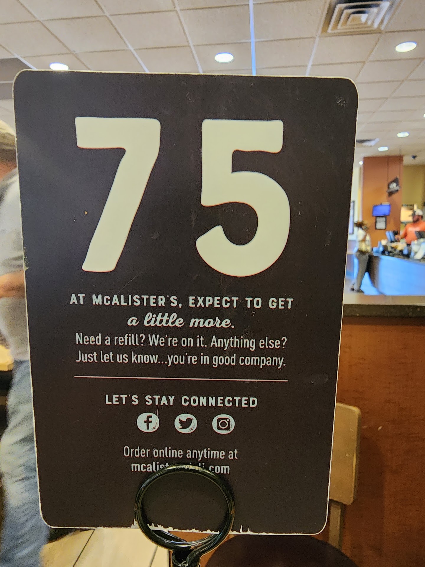 Read moreCame in today 07/27/24 .. its been a year to see if they fixed any issues. Well, I didn't get past the register before deciding to never return to any Mcalisters establishment. Yet another restaurant with no waiters expecting customers to "tip" someone for doing the job they applied for. It is not customers' jobs to provide your workers with extra money so they can survive. 07/26/23 came in with my family to not be greeted by the ladies up front, cursing, and gossiping. But I was definitely attentive if i was going to tip or not . Took a while to get our food compared to previous visits. Witnessed the lady up front handle trash then cups then customers plates with no gloves or in between hand washes. Tea was horrible. I truly wanted a full refund but couldn't get their attention over the gossiping. The order number was #75. we had 3 McAlister clubs, 1 king club with drinks....