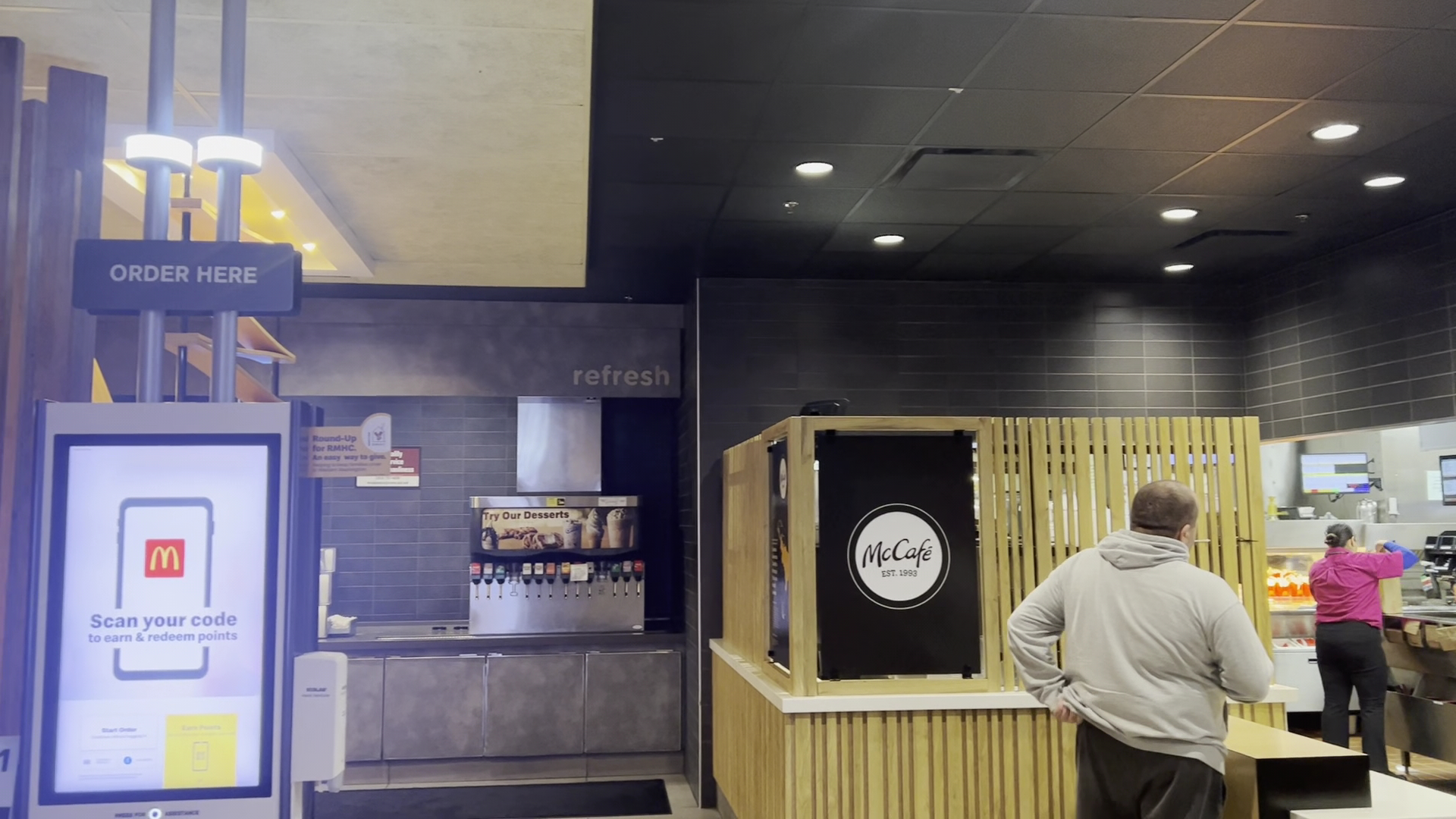 I went through the drive-thru once for a Big Mac and 40 pieces of chicken nuggets. After dropping them off for my nephews I came back and wanted to try to order inside the restaurant. No one was there to take my orders and the ordering system was not working for me, so I waited 10+ minutes for someone to show up so I could place the order. Everyone was so busy working in the kitchen area. Some customers were given the wrong waiting number and didn't get their food so they all came up to ask for their food one by one. It was a bit of chaos I think.