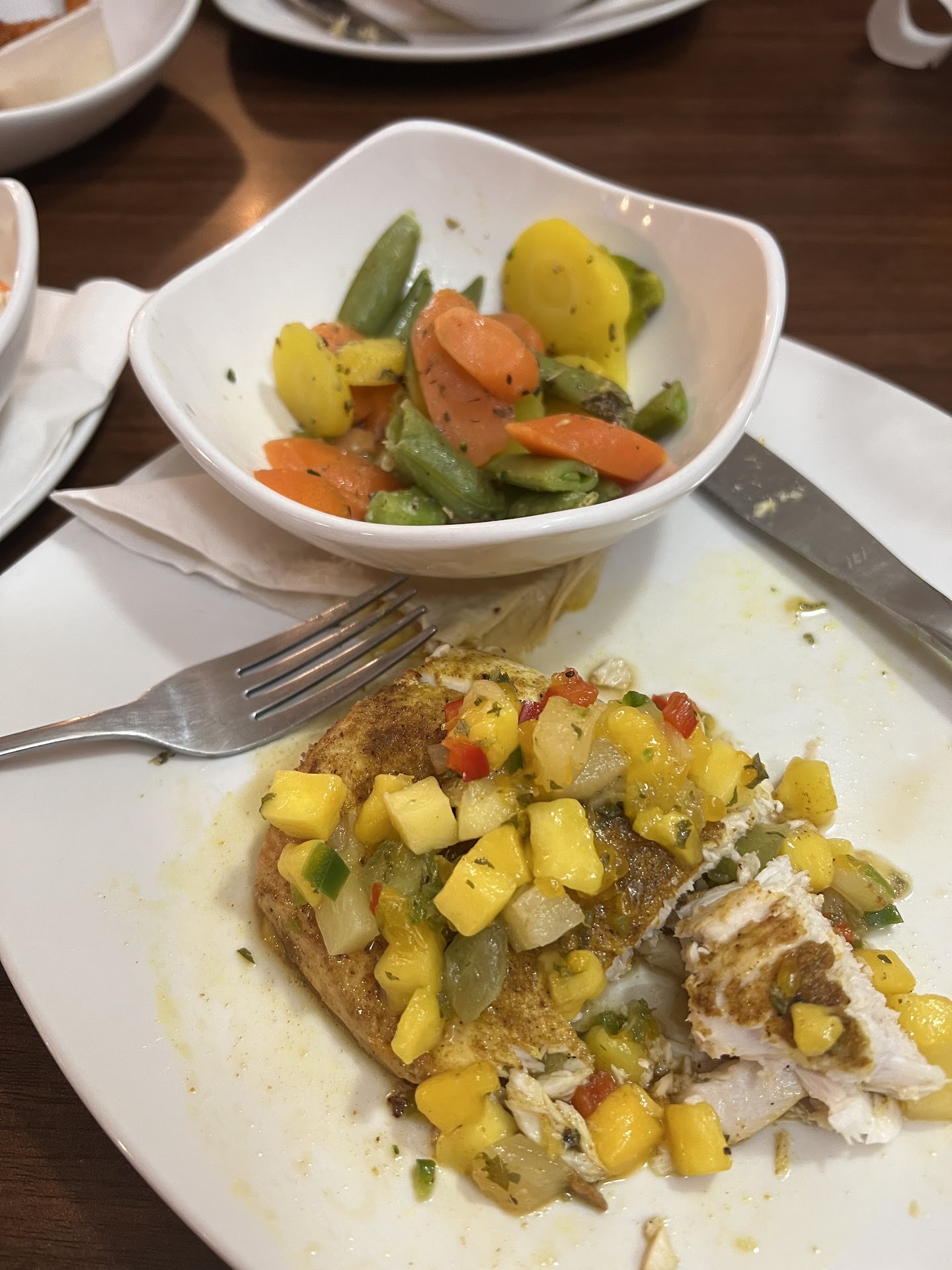 Our server was friendly and took our orders promptly. My husband had the grilled chicken sandwich, I ordered the breaded tenderloin, and we shared fries. The sandwiches were good, but the fries were a bit disappointing—very small portion for nearly $5 extra. They were thin, McDonald’s-style fries.