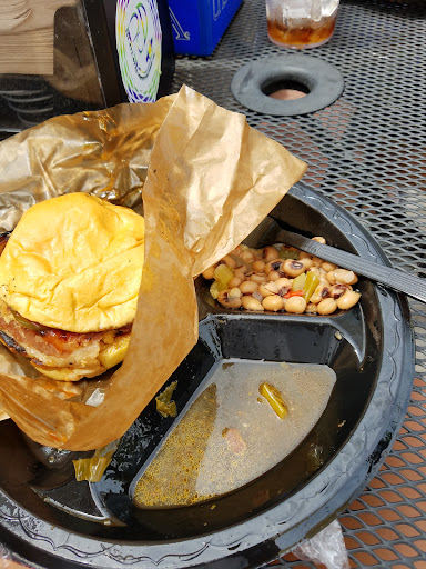 Read moreTasty food and a short time between ordering and receiving your food. If you go on Monday, don't miss the meatloaf special with greens and black eyed peas. I got the meatloaf sandwich, which was messy (the meatloaf was falling apart, a lot like bean burgers tend to) but juicy and flavorful--the meatloaf was wrapped in barbequed bacon, which is always a good idea. The greens were some of the best I've had at a restaurant (not pictured because I polished em off before I thought to take a photo), they were obviously fresh and crisp before being stewed in bacon and some tasty seasonings, and were lightly sweet. The black eyed peas were cooked with diced link sausage and diced okra (it appeared, but rest assured they weren't slimy in the least) along with the usual cajun trinity. My husband gave me his grilled cornbread, which was great as well, and he was happy with his chicken tenders, which he said were lightly breaded and crispy on the outside, tender and juicy meat on the inside. I also taste tested the mac and cheese (baked, not too juicy, lightly peppery), ribs (nothing to write home about, in my opinion, but I like mine falling off the bone and dripping with sauce) banana pudding (tasty but not enough Nilla wafers for my liking), and oreo pudding (rich, chocolaty, and moussey) from my group's plates (they offered, I promise...).