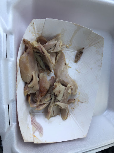 On top of this, this is what our food looked like when we got to car. Hopefully photos came through. BBQ was very mediocre, the bread was bone dry and burnt, beans were actually good. The chicken looked disgusting!!! It was supposed to be pulled chicken. Fed that to dogs.