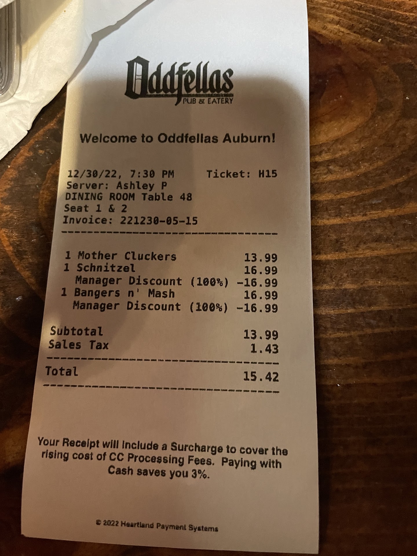 During this time she bypassed our table to deal with the larger table first, leaving us drinkless for approximately 20 mins before we had a beer on our table. The time between us getting our appetizers and our dinners was nearly 45 mins, and when asked to make sure our food was fresh, she delivered a dish that had sat in your expo window for half an hour. Finally, when confronted about the lack of good service, she very rudely swiped the cold food we were given. We literally just stood up and left. Now: I have visited your pub before multiple times. I am a local, I have lived in the area for four years. After the service I was given, I have no want or will to go back. Half Lion Brewing in Kent is equidistant from my home, and I get amazing service, hot food, and if there is a problem someone addresses it like an adult, not like a scolded child. You have lost 4 customers during this exchange, and I just thought you should know...
