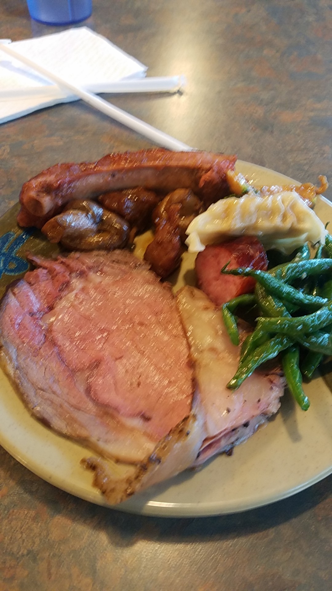You know what's better than fried stuff at a buffet, though? Grilled stuff. Broiled stuff. Crusty stuff. The chicken-on-a-stick and hibachi grill are some of the best you'd get anywhere, and the prime rib is LEGIT! Again, dirt-cheap Chinese buffet, people. I've had worse steaks at Ruth Chris's.
