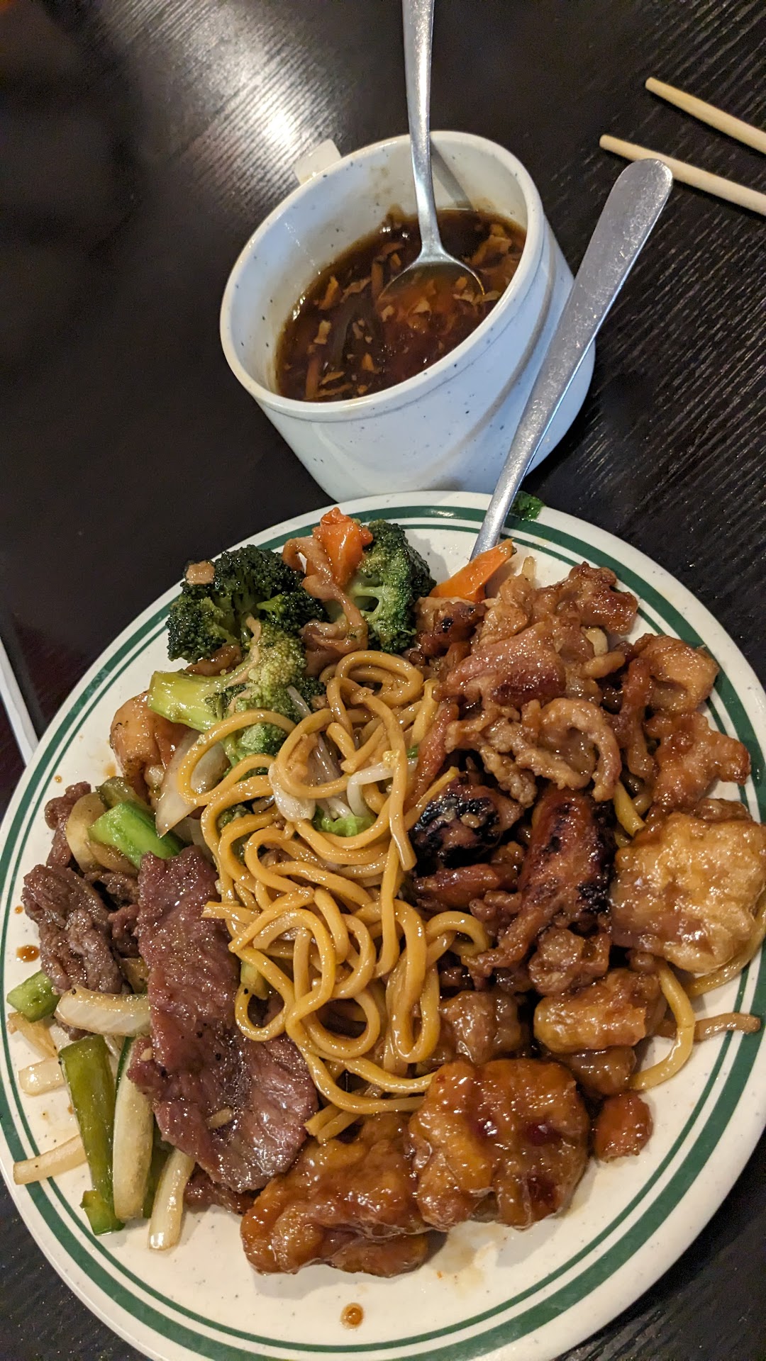 Read moreI've been going here since I was young. Probably since late 2003. I would rant and rave about how much I love the food. But new owners are a total let down it has been a very rapid decline. They instantly remove staple products and change many recipes. The sesame chicken, which was one of my favorites, has been removed and replaced with some repugnant sea food boil that would probably go well with a side of puking and diarrhea. The chicken on a stick has been changed and is now very bland. The fried rice tastes burn and rancid. The over all food quality is disgusting. Everything is either over or under cooked. As for the wait staff. They were cold and unresponsive. I was there for nearly 40 minutes with a empty glass for the majority of the time and had to walk up to get my check since the teenage who runs the join apparently, was playing on his phone. Honestly I dont know if I've ever been more disappointed and heart broken over a restaurant. Oh and its $16.00 per person for that nasty meal plus your drink cost. I will sadly not be going back while its under the...