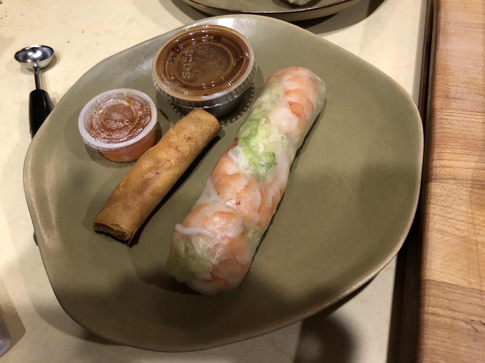 The food itself was quite good. The shrimp fresh rolls were stuffed with lettuce, noodles, and shrimp. The shrimp spring roll was fried perfectly and bursting with whole shrimps. Unlike most places where it's just a few measly stuffing, their spring rolls were abundant.
