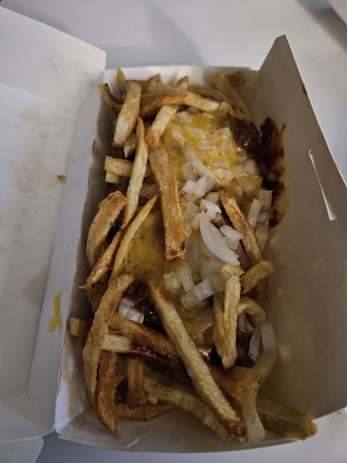 This was a disappointing experience. I was hoping this burger place would be some decent competition for frugals but it's not it's actually a place for people that like In N Out and I am not one of those people. The burger was cold and the cheese wasn't melted meaning that they precook their patties and assemble when ordered. The amount of salad I had to pick off of it was nuts and the giant full slice of onion was a bit much. The burgers are also tiny and bland as there was barely any sauce swiped across the bun to help add anything to this burger. My husband got his burger with fried onion's and liked it but he's one of those In N Outers I was talking about. We also had the chili fries which was the biggest let down. The fries were single fried which makes them a weird texture. They also had a bitter flavour and no seasoning. If you've ever had In N Out you already know how terrible their fries are and these are a close second. The chili didn't do anything to help this situation as it was bland and smelled kind of funky. We ended up throwing out the entire container after four bites The best thing was the cold brew milkshake which I do recommend if you're looking for something with a strong coffee flavour and that's not too sweet. Great consistency too. I'd stop here for a shake or cone but we won't be...