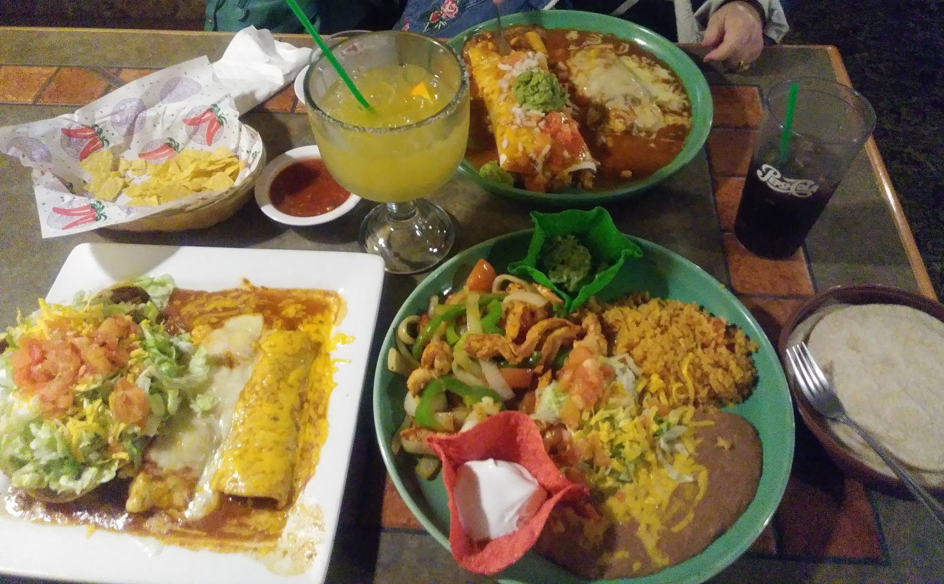 Read moreAs someone who loves Mexican food (3rd Mexican restaurant in past 5 days) I was very disappointed tonight. First of all I ordered a house margarita on the rocks and it was carbonated. I reread the description on the menu thinking it was a house secret recipe but nothing on the list of ingredients had carbonation. Next I ordered the shrimp fajitas, a rare treat. I was sold when I read it included mushrooms, an ingredient not often included any more. When the dish arrived I was shocked to see some of the smallest shrimp I've ever seen in fajitas. They were overcooked and completely flavorless. It tasted like they took previously frozen cooked shrimp and tossed them in with peppers and onions. Then I realized there were no mushrooms. When I questioned the waitress she offered to bring a side dish of them. They were cooked in a completely different spice from the fajitas. All of this cost me over $30. Such a disappointment. I will...