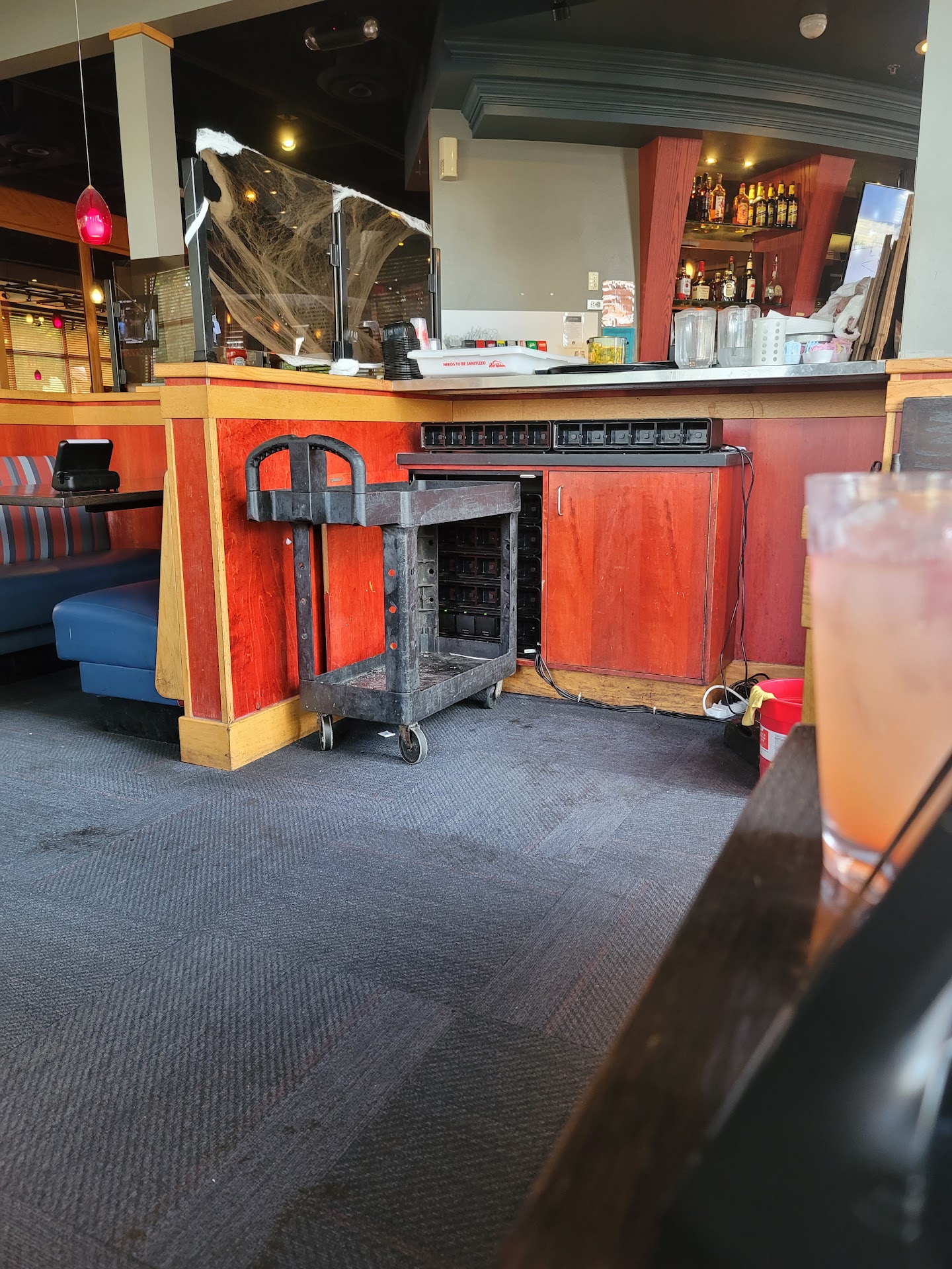 Service, not so much. No wait to get in. Did wait 10 min for a server to take my order. No problem, looks like they are running with two servers in the dining room only. Place order for drink and cheeseburger. 10 min later drink arrives. A bit slow for a drink, but hey, shortstaffed. 15 min after order placed, burger arrives. It is a messy one, lots of relish and sauce. Cool! I like that. I'll just grab a napkin and... no napkins. Huh. Look around, no tables have napkins. Maybe with the silverware they provide when you are seated? Nope, no silverware. Huh. Okay, try to flag down a server. 5 min later get success, tell them I'd like -"fry refill? No problem!" and leaves before I can tell them I need napkins. 3-4 min later they drop off napkins while seating another guest. By this time the burger is 15 min old on tge plate, under a cold vent, and is actively colder than room temp. Hey, no problem, things happen. I am in no hurry. Five min later fries that I didn't ask for arrive. I try to ask for a replacement burger but that waitstaff is just doing fry refills, not engaging with diners. By the time the burger is 30 min old, staffer comes up to see if I want a to go box. Sorry, no, this burger is old and at room temp. I gave up, took my untouched plate to the lobby to meet with a manager. They came out, I explained the issue. They tried to offer me free desserts if I don't write a bad review. Bribery.