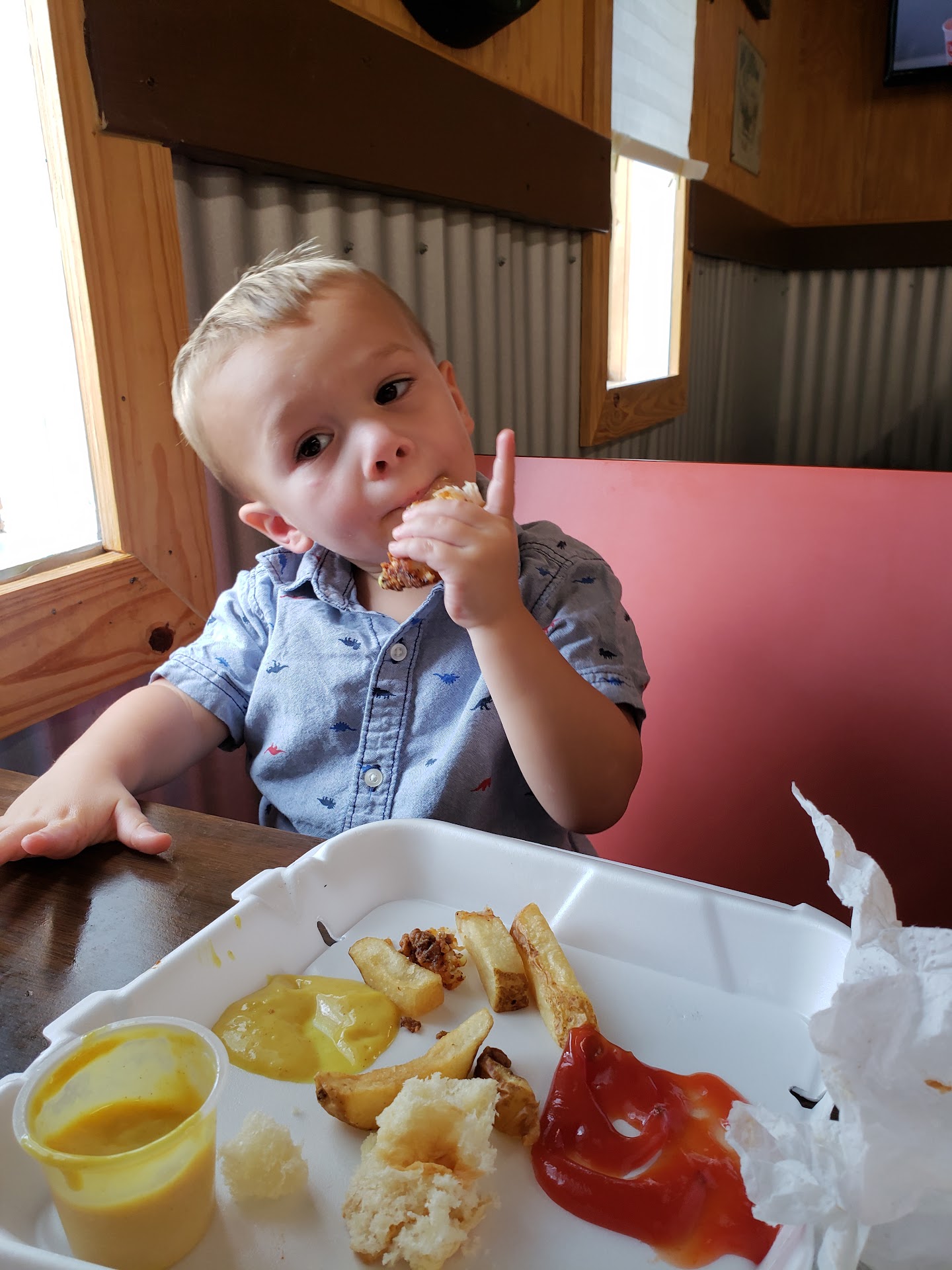 Read moreDecent burgers but there's a few things that can be improved. We got two burgers and a chicken finger box for the kids (pictured) for about $30 bucks. Burger was delicious but the cheese was not melted, which I consider a bit odd if you specialize in burgers. Burgers are served in paper wrapper (no plates available) which made it a little hard to dip our fries in ketchup. Bathrooms were clean and decor was homey.