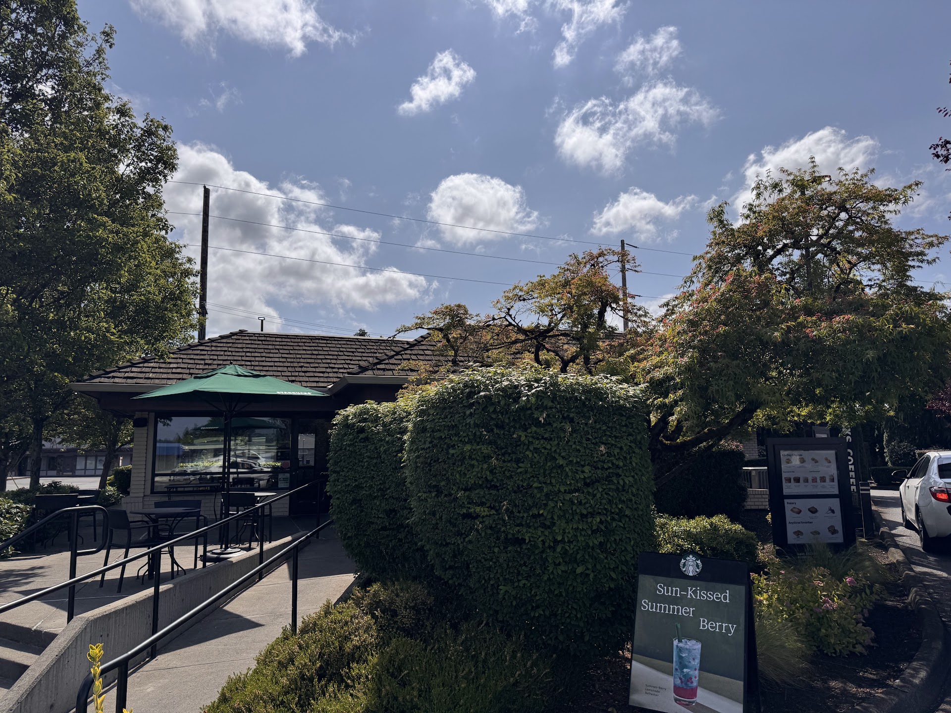 This would be a 5 star, if the landscaping was kept a little safer at driveways. This is my local starbucks, have been coming daily for 2 years. I would say 90% of the time my drinks are perfect, which is a good rate in my book. They ALWAYS fix any error in order without hesitation! I like all the lovely individuals I have encountered here, they are usually pleasant and personable! My concern is, trying to leave this location, seems like a death wish. The hedges/tree's have blocked the view of oncoming traffic from "M" Street. You nose out, praying no one is going to smash into you because YOU CAN NOT SEE! Then, once you do nose out, the person who slams on their breaks to let you through, almost gets rear ended. This brings me to the only other entrance on Auburn Way South. The traffic FLIES down the hill to make it through the light. You will sit there forever waiting for a break so you can safely attempt to make it to center turn lane while you wait for another opening. This is only an issue when trying to make a left turn. Right turns can usually find a space to jump into. Remember, if you exit on East side, you risk being pummeled however it's the safest way to exit for traffic heading up the hill. The South exit, puts you at high speed traffic who slams on their breaks to get into the drive through causing a bit of chaos to the speedy drivers behind them. All in all, I just want to leave your parking lot safely! I don't know if the landscaping at entrance is City Property, Starbucks, or the home owner next door. But as a functioning business in our community, PLEASE recognize this hazard and make the line of site...