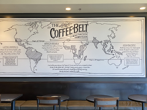 Read moreSuper nice store. Next to a busy highway, it has a steadily busy drive through window. There are only three or four staff, but they are cheery and right on top of everything. The interiors is lovely and clean. Outside there is some seating but it is a 100 degrees today so I’m inside. There is a huge amount of space in the middle. Front the some ceiling lights I can tell there used to be a community table. I miss that There are also not “cozy chairs”. However, there are high top and regular tables, some with a bench seating option that are enough and in good shape.