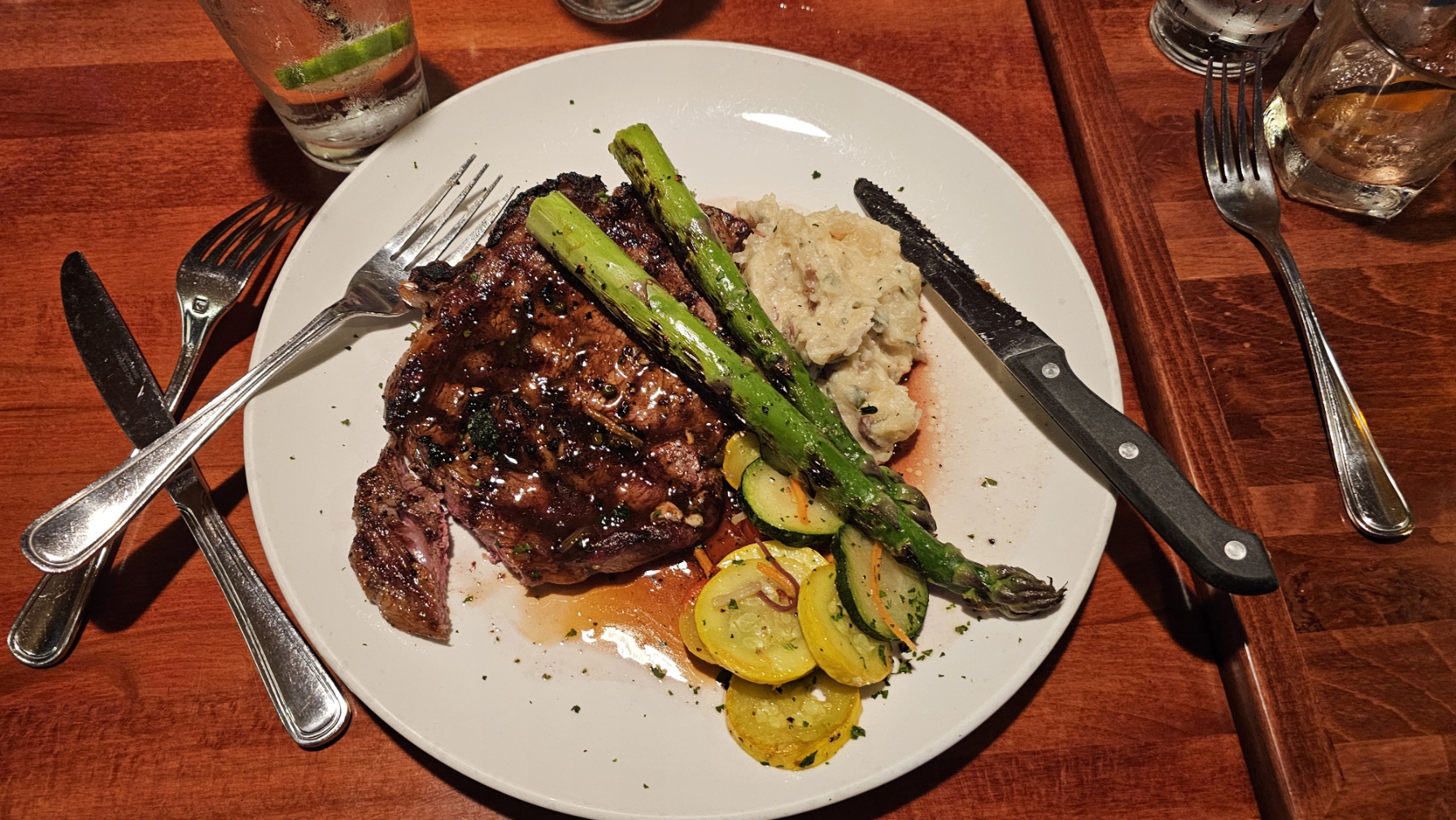 At the bar & upon arrival, we were greeted by numerous staff members, but it still took a while to order drinks. Drinks were decent, nothing special, although they provide a full drink menu with many options.