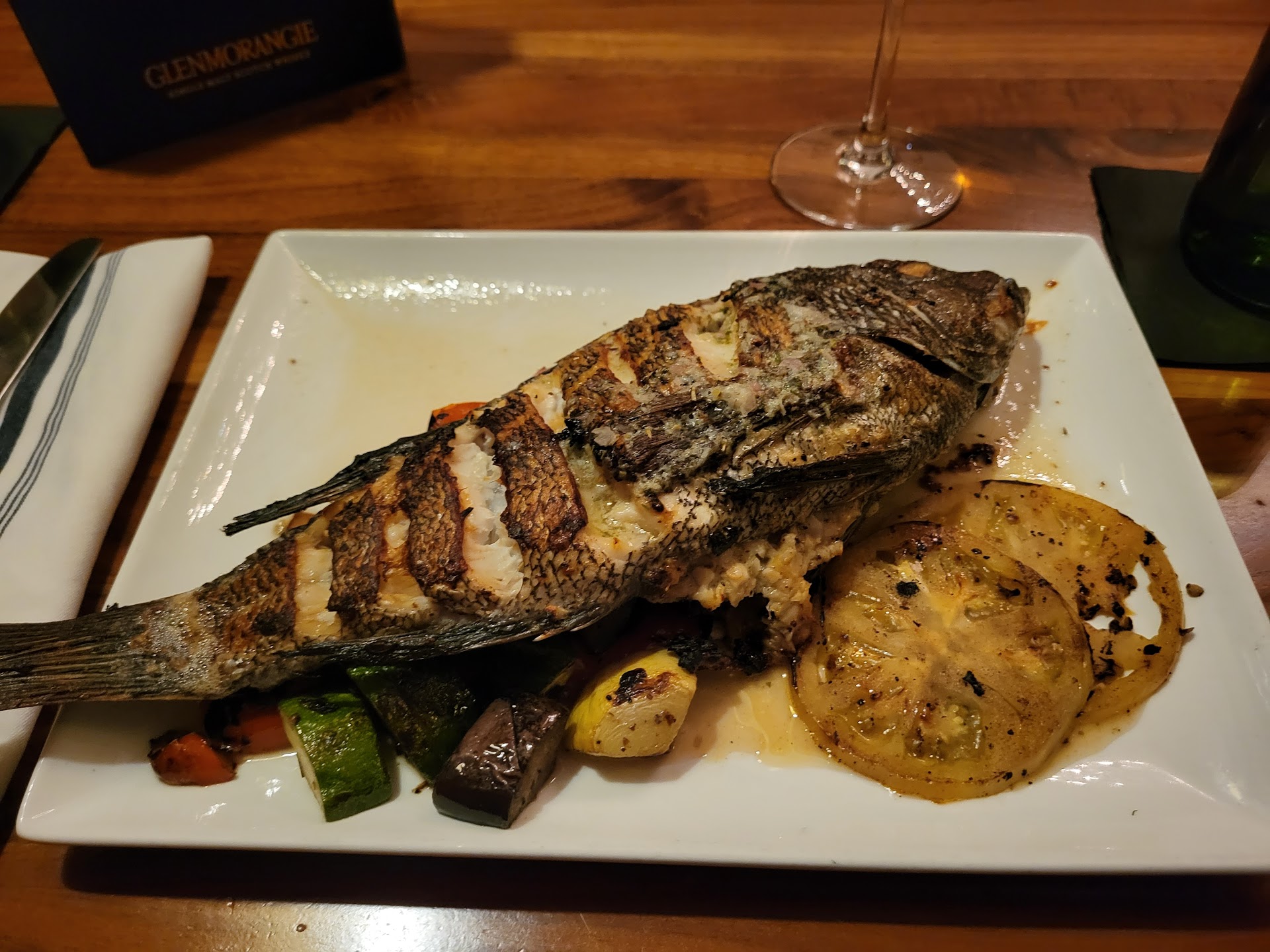 A friend recommended that we try this place. Our first time was around 8pm on a Saturday night. The staff were all friendly and helpful. Inside, if you are unlucky enough to sit in the same room with a loud table, then be prepared to yell at your dinner date - there us no sound dampening in here. One table with 4 guests were so obnoxiously loud that we could not hear our own conversation. Luckily the friendly and helpful staff sympathized with us and moved us to a table in another room. But if you visit on a crowded night, that may not be an option. We had the Spicy Blue Crab Dip as an appetizer - there was a little heat, but it was otherwise mushy and bland. We both ordered off of the daily special menu. I had the Sea Bass (pictured) and he had the Ribeye. My sea bass was cooked well and was served with very fresh vegetables and grilled green tomatoes; but the flavor was lacking, it was just kind of plain, even with the Béarnaise sauce. I had a glass of Sauvignon blanc with the dish. Hubby ordered his ribeye medium rare, but it was served medium well - we may need to attribute that to the noise level of the other table though, our server may not have been able to hear him over the noise. He said that there was almost no marbeling in his steak, only a small area near one outside edge. He did enjoy the accompanying sides. For dessert, we split the Bananas Foster Bread Pudding - which I very much recommend. This was the best thing we had at The Depot. In all, with 2 drinks, an appetizer, 2 entrées, and a dessert (they actually comped the dessert because we moved tables due to the noise) after tip we spent $160'ish here. I am interested in trying again, maybe picking something from the regular menu instead of the daily special. Again, their servers were great and really seemed to work well together - refilling waters, delivering dishes, and bussing each others tables. Even the valet workers were nice. There is a bar area in the first room you enter, then we were originally seated in the next room. We moved to the third room to finish our meal, and it looked like there may have been more seating areas further down the building, but I never went further than the 3rd room. There was also...