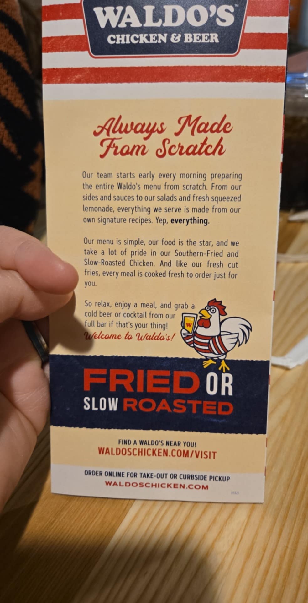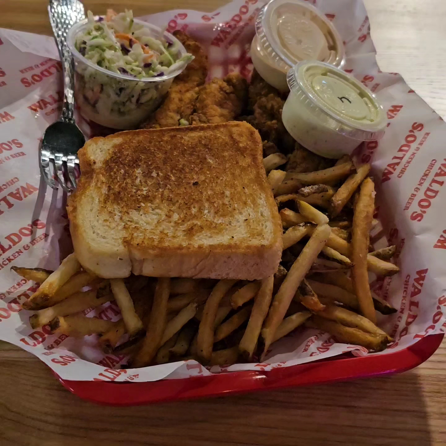 Ā Ā Ā Read moreWe went to Waldo's Chicken & Beer this evening after seeing a recommendation from someone in a local food group and it was WAY better than I expected. We were greeted by a gentleman who I'm assuming was the owner. He immediately filled us in on their offerings and how it all worked. It's a typical counter service restaurant where they bring your food out to you but clean up after you. We ordered the fried pickles and they were excellent. Then we got the "Feed the Flock Tender Meal" and that came with 12 tenders, coleslaw and two sides. We chose fries (so thankful they are not crinkle fries!), mac and cheese and it also came with cheddar biscuits. That comfortably fed four people. One of my sons ordered the Fowl Mouth Chicken Sandwich and was very happy with it. Zero complaints, full bellies, great flavor and the perfect crisp. We loved their homemade ranch and the Waldos Tender Sauce. In my opinion is was similar to Cane's, but better. We will definitely...