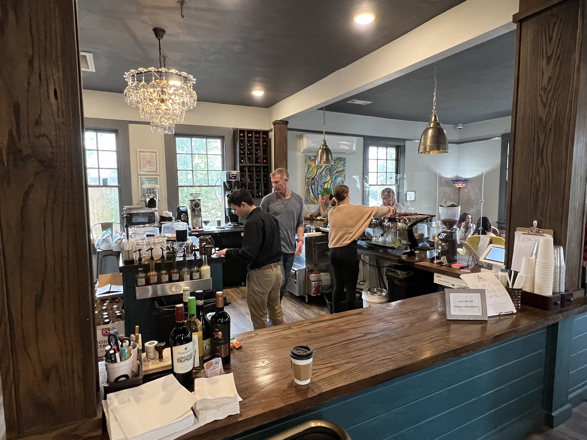 Read moreI love this place! It has my favorite iced chai latte out of all the local spots I have tried. The quiche is delicious and the wine selections are great. Definitely recommend going to a tasting to experiment and have good fun! They had every book in a series I was reading except for one and the owner was able to order it for me. The publisher sent the wrong book cover, sending the more expensive copy but the owner honored the original price of the version I was initially trying to order. We spoke just on that occasion and he has not only remembered my name, greeting me as I come and go, but has made it a point to remember other names of people that go in and out of the doors. You can hear him greeting people like he's known them forever. All of the people working make things run quick and smoothly. The atmosphere is comfy with several seating options, including indoor, outside on the front patio, the front yard, and the back patio. Parking is kind of always full but there's an empty lot across the street I've been able to use. I brought my dog here once to sit with me outside so I would say this is a pet friendly local coffee shop, bring waste bags just in...