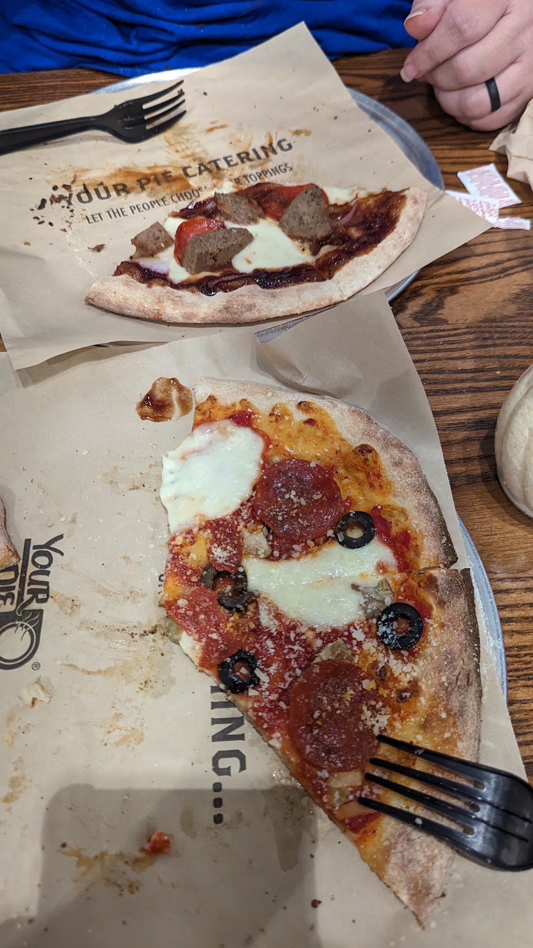 Read moreThis is our first time at a Your Pie and it was very good. The picture is all that's left while I paused to do this review....lol. My wife and I each ordered our own 10 inch. It's unlimited toppings for the same price. She and I while we were eating already started deciding what toppings we were going to get next time. 🤣 We've got fresh mozzarella so it doesn't cover the whole pizza so we're thinking regular mozzarella and fresh.