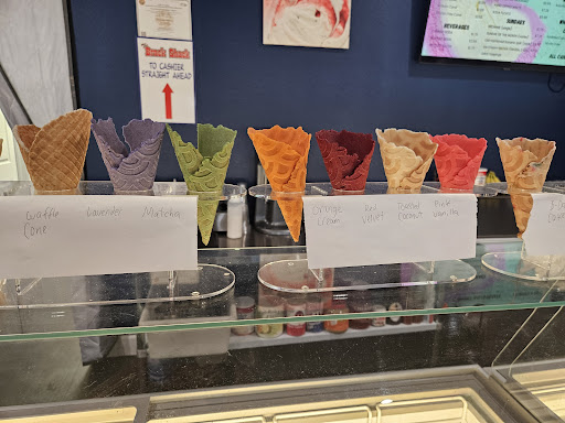 The workers were very kind and told us about some ice cream is sugar free others were dairy free and names of all the desserts. Very nice it is attached to the BBQ restaurant so you can eat dinner and then go have desserts. I also thought the rockers they have out infront was a very charming idea. They have a large variety of cones to choose from as well. The seating inside was a little small but it was a nice place to go...