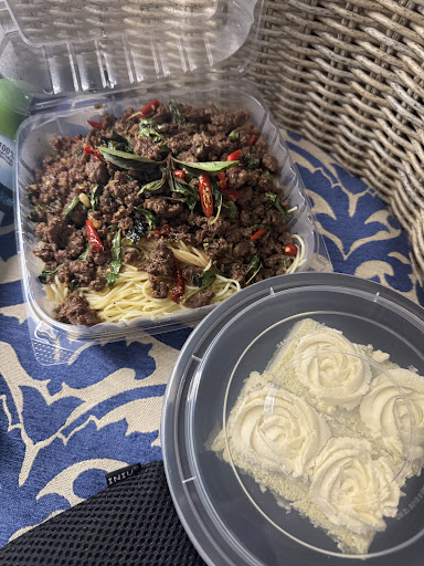 This food was so fresh and awesome! We had pad kee Mao, spring rolls, and mango sticky rice with Thai tea. Rodney delivered it to our site at the Margaritaville RV park. His wife Maya made the food from super scratch. Everything was so fresh and delicious!! Our noodles had a bit of spice so beware if that's a worry for you, but we loved it with the spice..