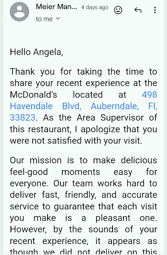 Read moreUpdate 5/2022: Bumping my original score from two stars to four - there is still work to be done but hear me out on this one. This McDonald's is in a prime location, right in the middle of town and near most of Auburndale's shopping, meaning a longer wait and order mishaps are inevitable if you choose to go during a rush. Even with this, I have seen a noticeable improvement in wait times and wrong and/or missing food is a rare occurrence. Ice cream machine and POS (point of sale) system down time has had a very slight improvement, but it still happens, no matter the time of day. Occasionally, you'll get lucky and they can still accept cash payments even if the registers are down. The level of customer service offered is where I've seen the most improvement - shout-out to the evening crew for handling all those late night Kens & Karens in the drive thru lane. Kudos! Keep doing what you're doing!