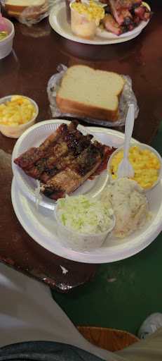 Quaint, small-town BBQ shack with authentic food and friendly staff. I visited on a Thursday for lunch. They are only open Thurs, Fri and Sat so plan accordingly. At noon the parking lot was almost full and most of the sit-down tables were taken. I got my food to go and sat outside in the shaded picnic table area. Their menu is pretty standard, I got the rib plate and a side of sausage, tea to drink. When I ordered it, the counter lady walked over to the pit and cleanly grabbed a whole slab, then brought it over and cut me four juicy, thick ribs fresh. For sides they have standard ones, mac and cheese, cole slaw, beans and potato salad. They also have smoked cabbage on special. I got the potato and cole slaw, which looked so good I got double cole slaw. The box of food was heavy, my total about $18, which I thought was reasonable.