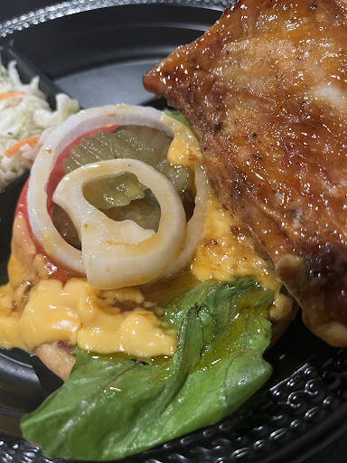 I really was hoping this place would be great. It was not, AT ALL. Walk in, nobody is friendly, 1st time so we are like, hey do we order here? The girl says yes, hands us Menus. Ordering then became interesting, I ordered a fried chicken sandwich with 2 sides & bread, which is $15.99, with okra ($1 up charge bc itās āspecialā) and tater tots rang up $1 extra as well - not listed as an up charge on the menu, so I switched to cole slaw. We order the rest of my families meals and it was around $60 for family of 4. Well- food comes and I provided pictures, I get a boiled inedible chicken slab sitting in a pool of grease (me and my husband tried and could not chew it) and coleslaw, no okra, waitress says itāll be out in a minute. Then, Who I assume is a manager comes out a minute later and says āsorry we are out of okraā⦠I said fine, Iāll take tots instead. I went back up front and told the girl my entire original plate was trash. The cole slaw was flavorless and not saucy, I also never got bread which is listed and I upgraded to try their Texas toast. The manager again comes out to apologize and did comp my meal. Well, because I hadnāt eaten all day and only had tots I try sampling my daughter sweet potato fries which are COLD! $1 upcharge for those as well. Shortly after my son finished his brisket mac egg rolls, he throws up!!! So, in short the only thing worth ordering there is tater tots which are an up charge. They offered to give us coupons to go back but we declined. I have no desire to ever eat...