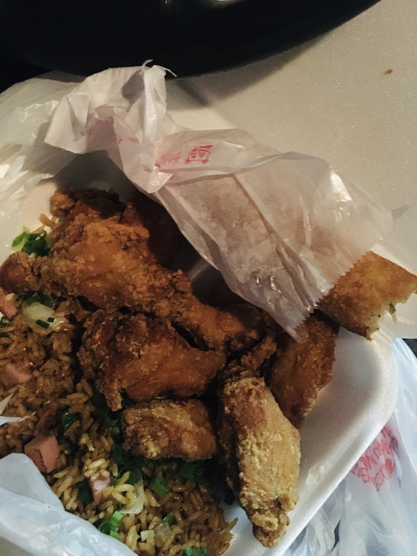 Read moreI was optimistic walking in this place, looking at it from the outside. I decided to try them out. My food order was correct, however my chicken wing shrimp fried rice was not what I hope for. The rice was okay but the wings tasted old, like they were from yesterday. I came in right after they opened I have seen restaurants save wings from the day before, not justify it at all, just saying you don't give customers food from yesterday. Your suppose to throw it out. I asked the Chinese lady up front to re cook it with fresh wings but she looked at me crazy, like she does not know English all the sudden. It is okay, I threw my food in the trash and walked out. I will not be back, I expect good food, when I pay with my hard earned money, they need to treat...