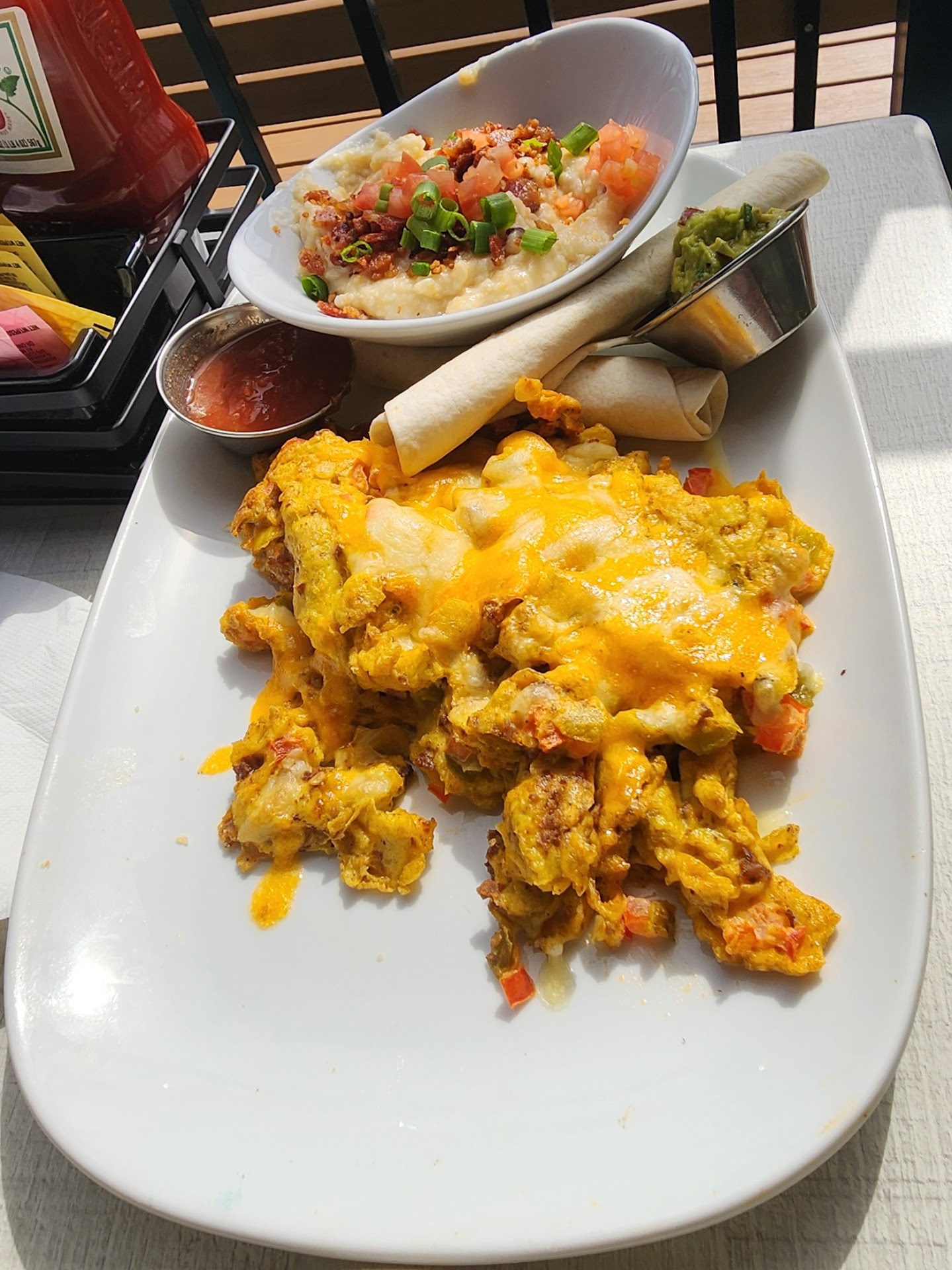 The southwestern scramble (I think that's what it was called) was very disappointing. The eggs were very overcooked bordering on burnt. The tortillas weren't even lightly toasted or browned. My crab cake Benedict had to be sent back the first time because it was ice cold. The second time around, it was better but not great. We were informed that the crab cakes are not made to order but are instead cooked beforehand and kept under a heating element until sold, and that could explain why they were cold. Which, for the price, just seems unacceptable. Especially since the crab cakes themselves were the most flavorful part of the entire dish.