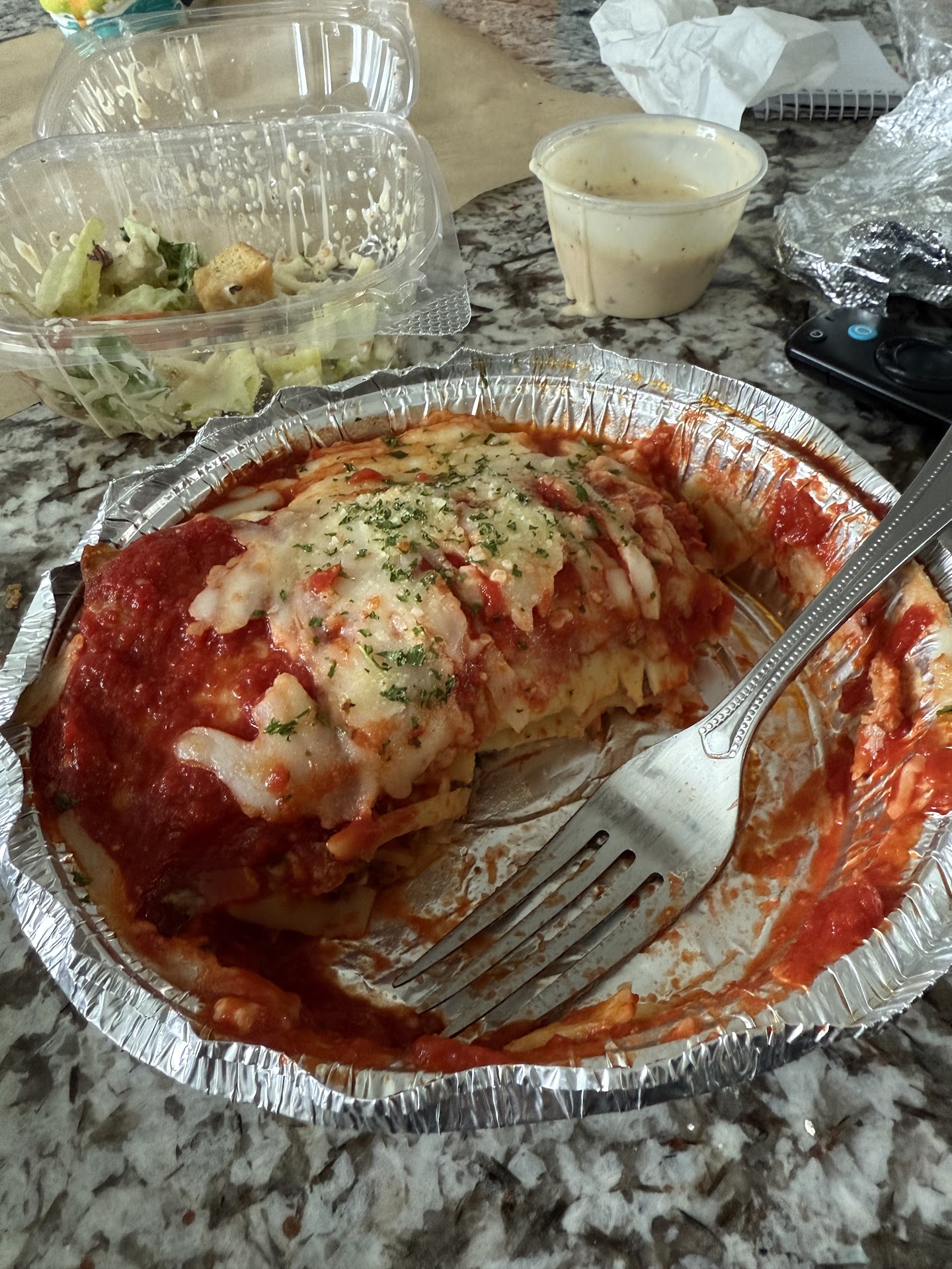 I am coming here to review this because the idea of this restaurant not being successful, because, itās a tough business and an uncertain economy āā- is not really an option for me. I consider myself a semi-foodie. Although, who isnāt? Is anyone genuinely like. Oh yeh, I like mediocre food. Iām not really interested in good food. But I say āfoodieā as in, I have traveled some. I have eaten Michelin star restaurants. Iāve been to Italy. I have eaten hole in the wall, well researched diners on a road trip because I canāt think of a worse horror than wasting the chance for a memorable meal. So Iām telling you this to build a little rapport when I say, this food is good. And I knew it was going to be good when I ate the salad. You know a restaurant has āitā when the dressing is homemade and delicious. First bite, I ordered the red pepper garlic dressing because it sounded the most homemade and unique. I was right. Quite possibly aside from the jalapeƱo honey mustard at Last Resort in Athens or an aged balsamic I had at a vineyard in Italy, the best I can recall having. I love it. Okay. I got the lasagna. They must use San Marzano tomatoes. It has that acidic bite that is just unmistakable. It is delicious lasagna. I ordered solo without my husband and it was all I could do to save some because I want him to taste it later. Even the breadstick. I was like? Okay itās a breadstick. Whatever. It was better than a usual breadstick. CrĆØme brĆ»lĆ©e cheesecake was creamy and unique. Would order that again too. All in all, Iām just leaving this review so you at least give it a try and give a locally owned restaurant a chance because. I will be back as long as...